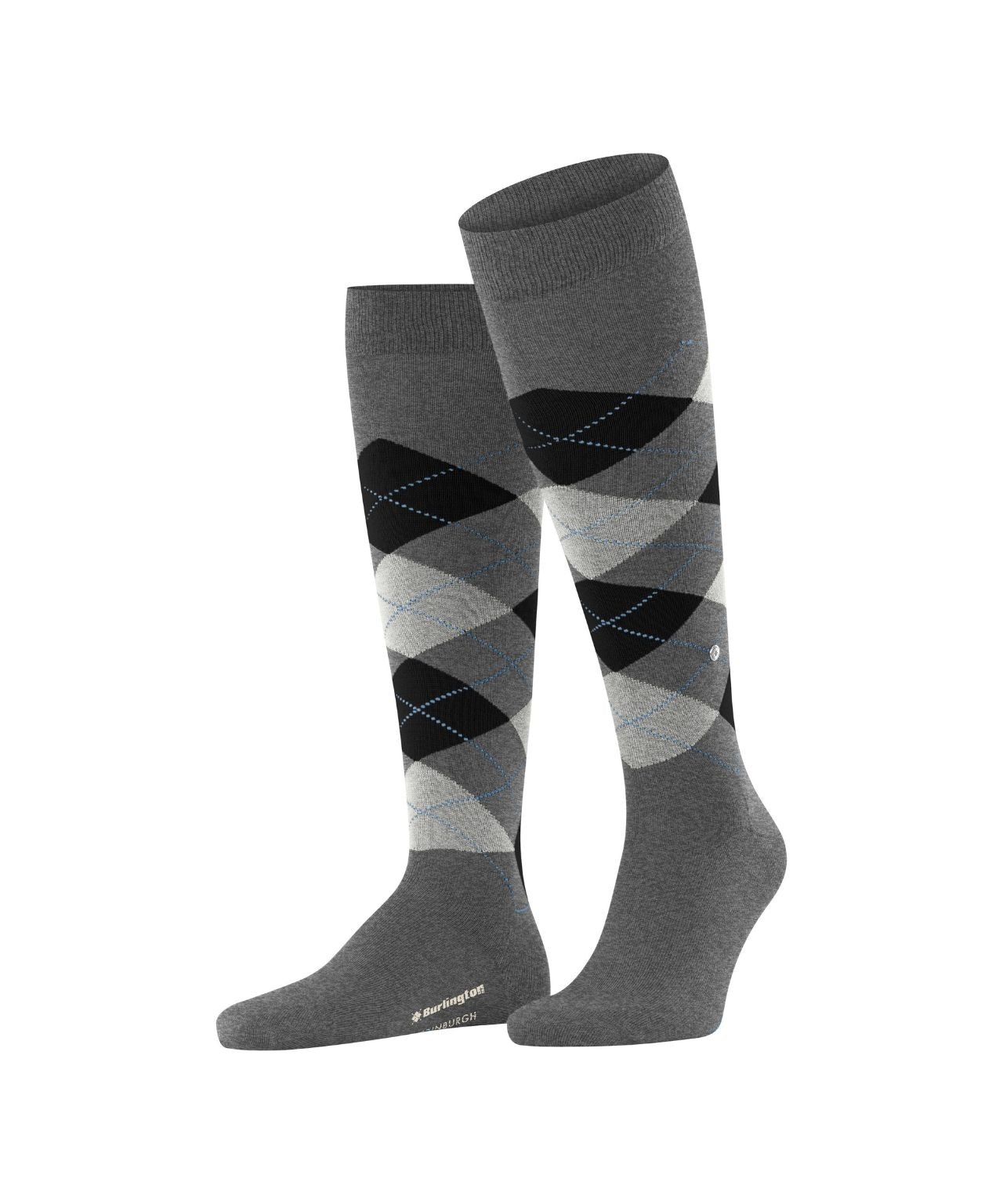The original: With the Edinburgh knee socks, an irreplaceable classic is added to the wardrobe. In Umber, Sporty Red or Royal Blue - the variations of beautiful diamond patterns seem almost limitless and are a clever eye-catcher in combination with mid-high business or leisure shoes. The socks feel soft and ventilate excellently thanks to the fine new wool and a hand-stitched toe seam. The special extra high reinforcement of the heel ensures optimum durability. The fine labelling with the characteristic Burlington Clip is incorporated into the side. Optimal durability due to extra high reinforcement of the heel Fine new wool for soft socks and excellent ventilation Labeling with characteristic Burlington Clip Properties Gender: Male Pattern: Argyle Transparency: Opaque Material: 71% New Wool, 29% Polyamide Look: Smooth Shaft Length: Knee Wearing comfort: Pleasantly soft Type of board: rib Padding: None Sole: Normal Style: Casual Sustainability: Yes