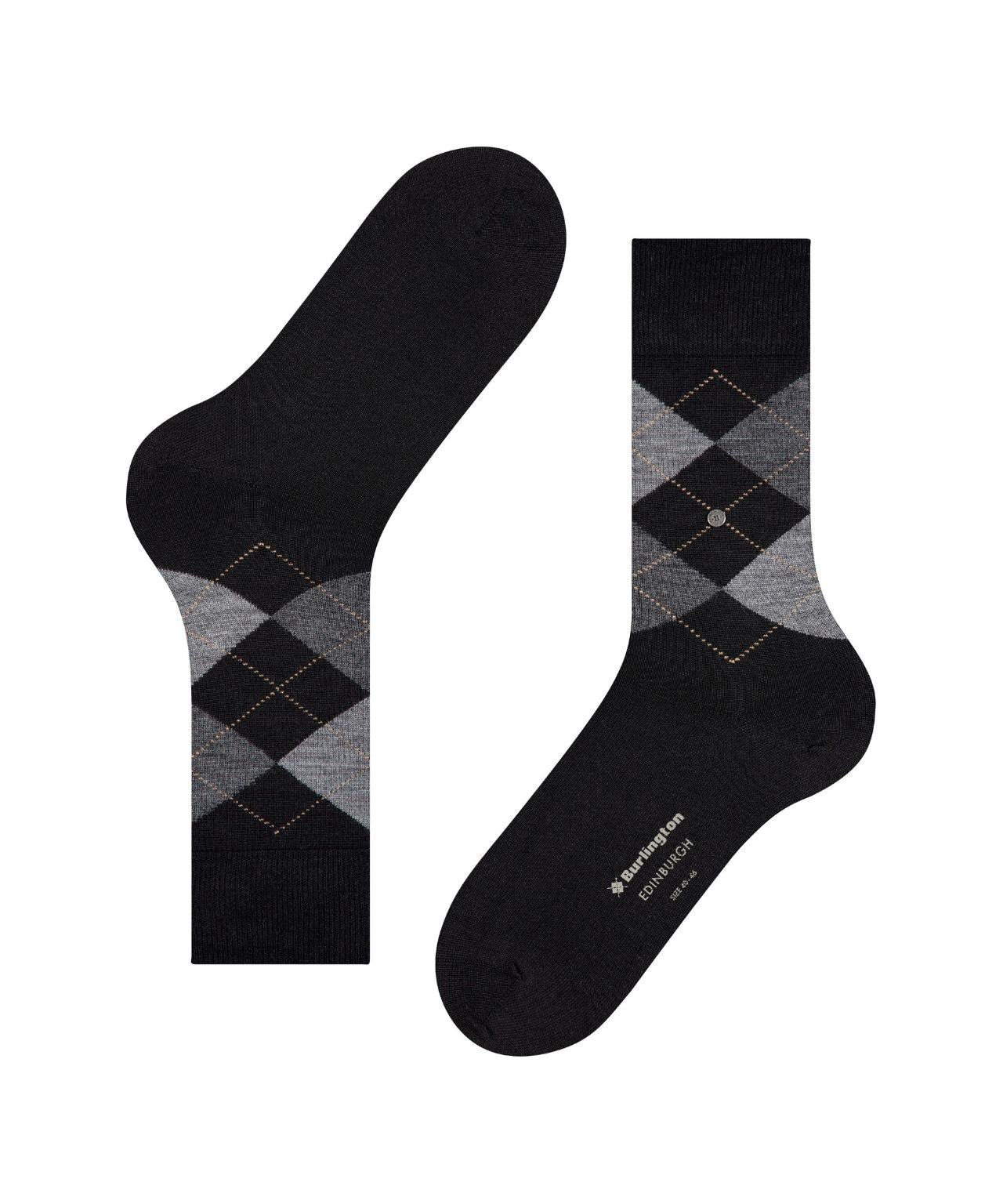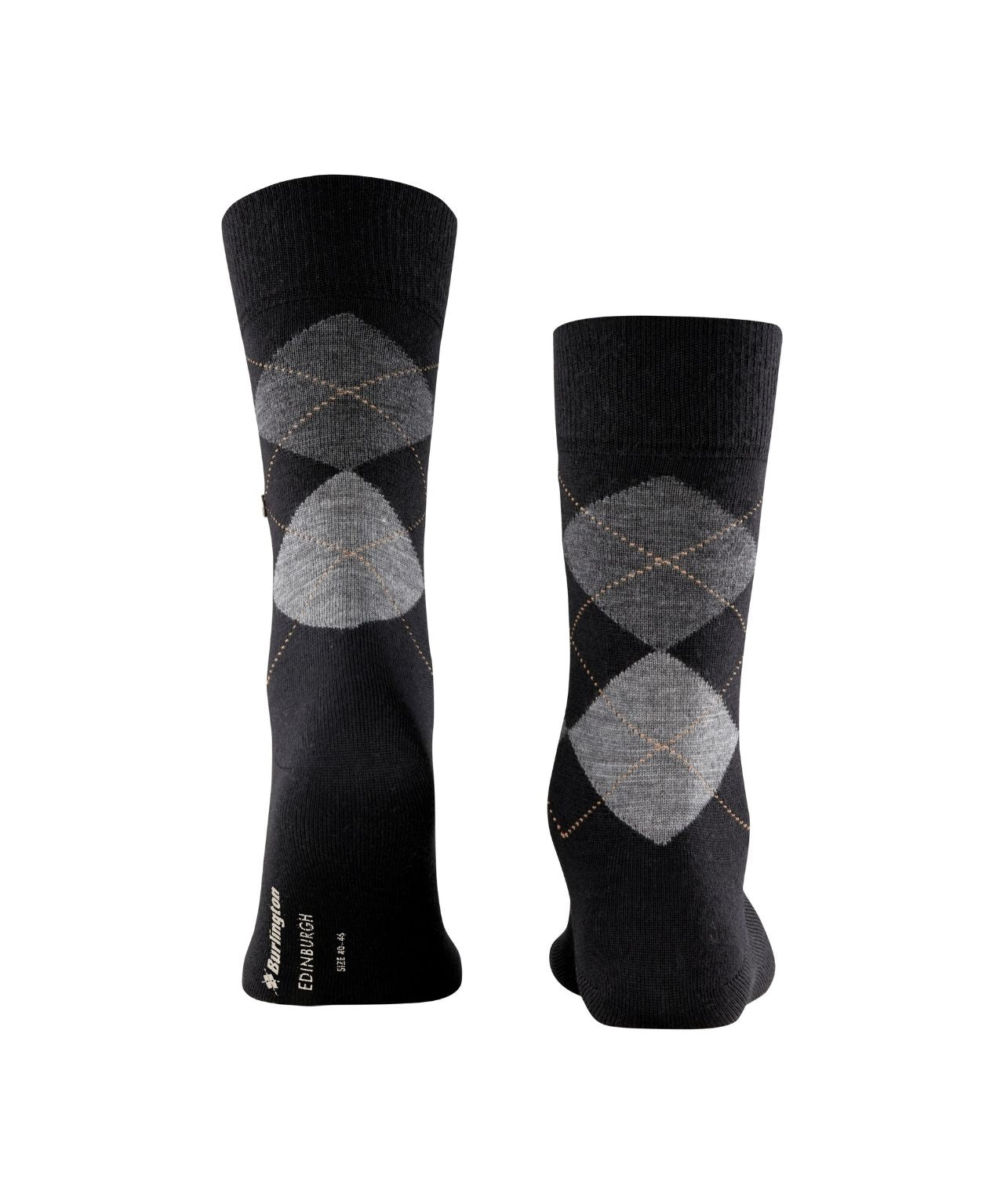 Classic meets comfort – and that at the highest level. The Edinburgh socks are a true partner for the week thanks to their argyle pattern and high-quality new wool. A gentleman knows what is good. Design & Extras: Argyle pattern Burlington clip Burlington logo in the sole Warming, high-quality new wool Features: Gender: Male Pattern: Argyle Transparency: Opaque Material: 71% New Wool, 29% Polyamide Look: Smooth Shaft Length: Calf Wearing comfort: Pleasantly soft Type of board: rib Padding: None Sole: Normal Style: Classic Sustainability: Yes
