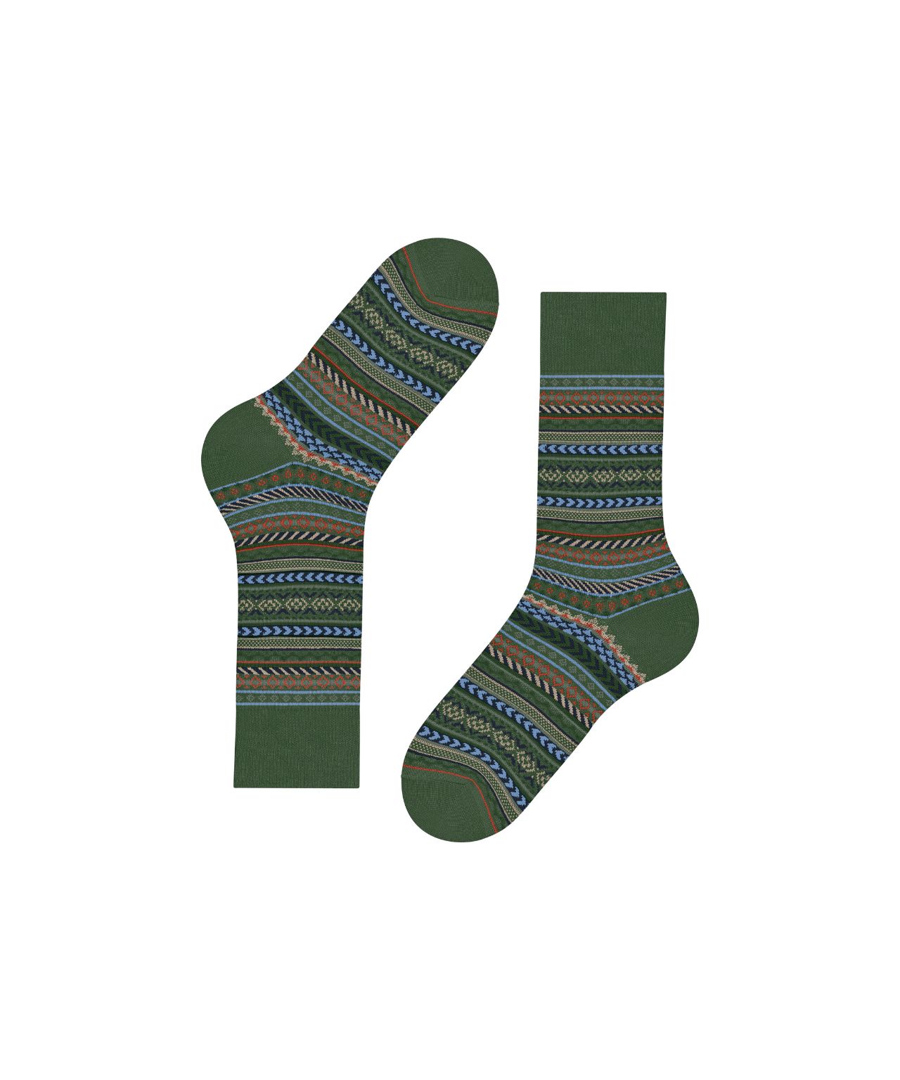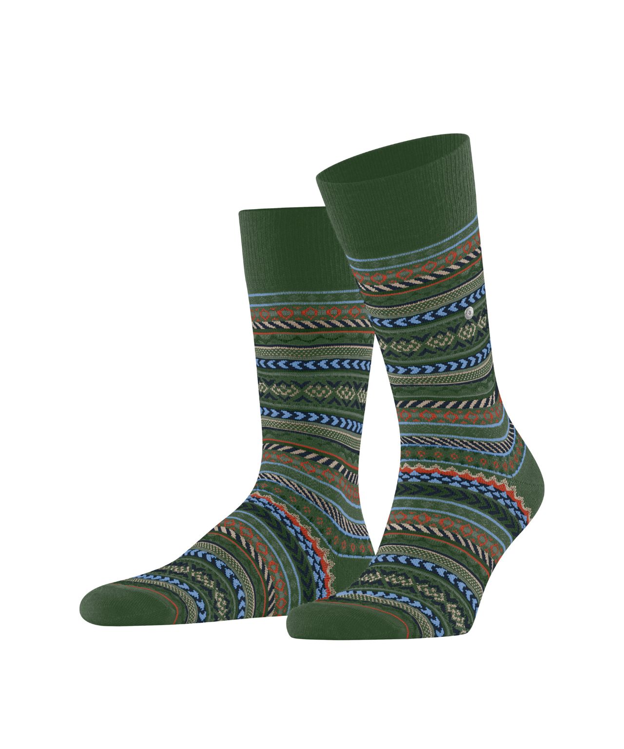 Retro colors combined with the classic Fair Isle pattern give these men's socks a charming, nostalgic look that doesn't take itself too seriously. Finished with the iconic Burlington clip, the design is perfectly rounded off. A must-have for anyone who wants to add fashionable accents and enjoy their style with complete freedom. Classic Fair Isle pattern High-quality wool blend Burlington clip Gender: Men Pattern: Norwegian pattern Transparency: Opaque Material: 65% Sheep's wool, 34% Polyamide, 1% Elastane Look: Glad Shaft length: Calf Wearing comfort: Pleasantly soft Type of collar: côtelé Padding: None Zool: Normal Style: Casual