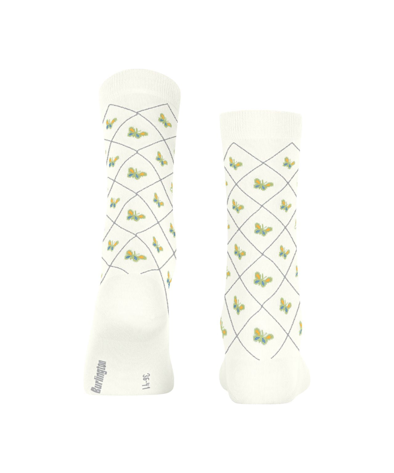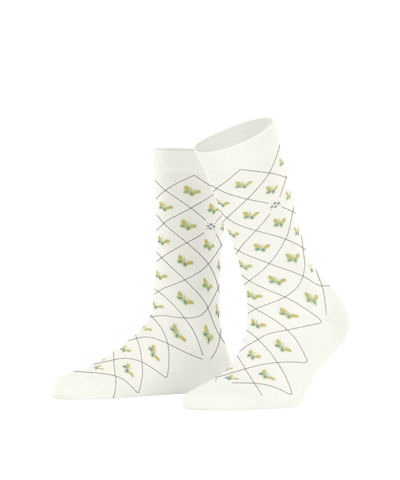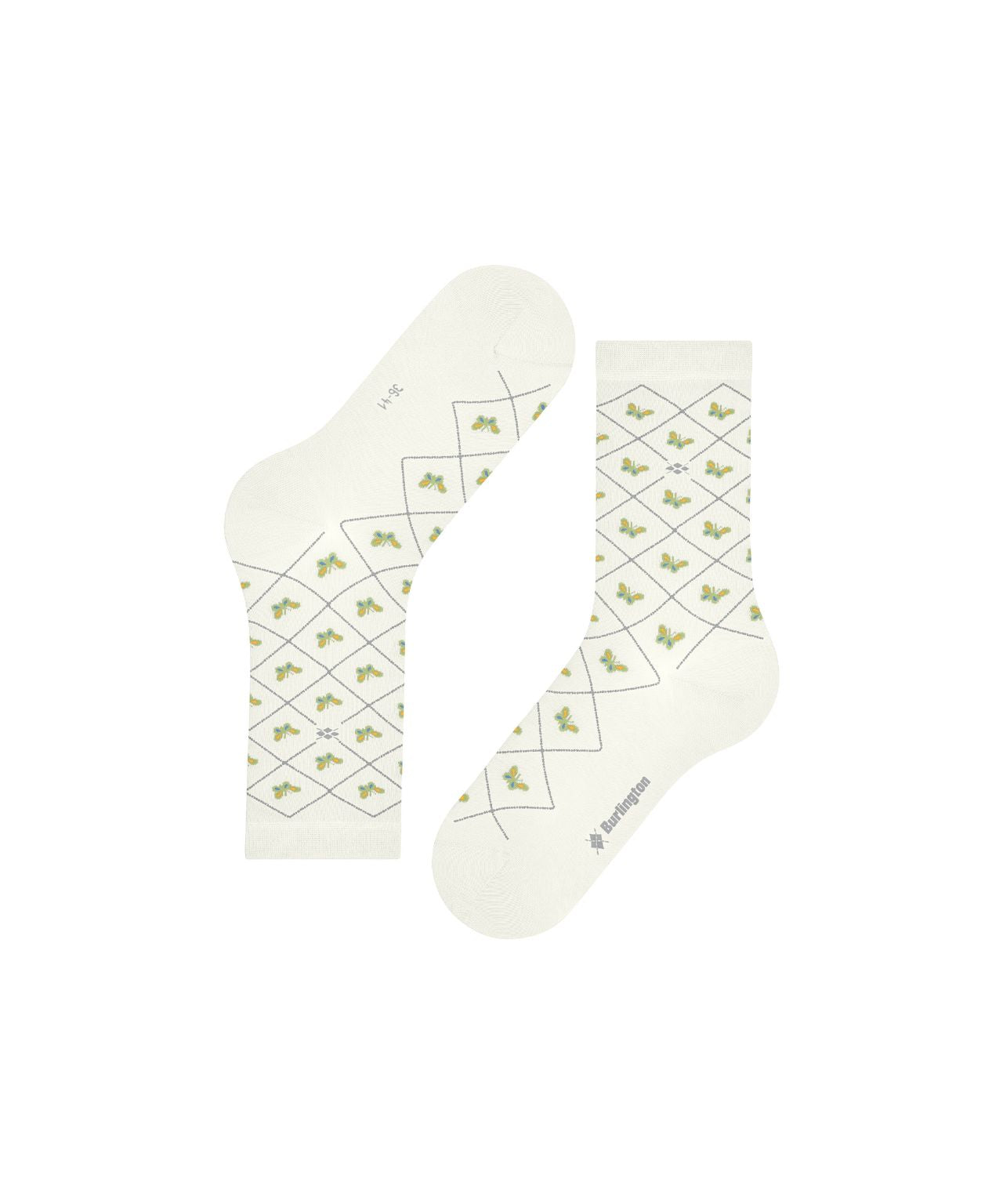 As light as a butterfly. As fleeting as a wingbeat. These women's socks playfully combine the updated argyle design with a mesmerizing butterfly pattern, reminding us to enjoy every summer day to the fullest. Made with love Design & Extras Revisited Argyle Design Enchanting butterfly motifs Burlington check Properties Gender: Women Pattern: Motif Transparency: Opaque Material: 77% Cotton (organic), 21% Polyamide, 2% Elastane Look: Smooth Shaft Length: Calf Wearing comfort: Pleasantly soft Type of board: rib Padding: None Sole: Normal Style: Casual Sustainability: Yes