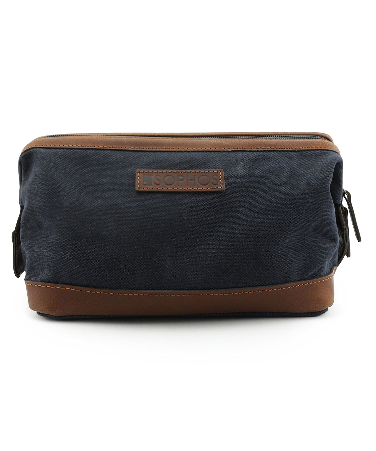 Toiletry bag made of sturdy canvas cotton with leather accents.