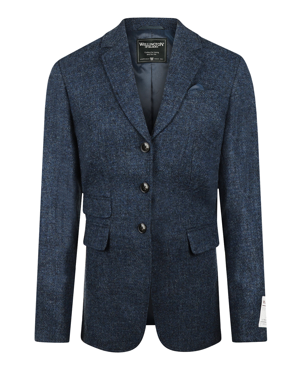 Looking for a stylish and sophisticated women's blazer? The Wellington women's blazer from Harris tweed is the perfect choice. Made from 100% pure new wool from Germany, this slim-fit design offers an elegant and tailored fit. With a classic 3-button closure, button cuffs and three practical pockets at the front (two slit pockets and a small pocket above), this blazer combines timeless style with functionality.