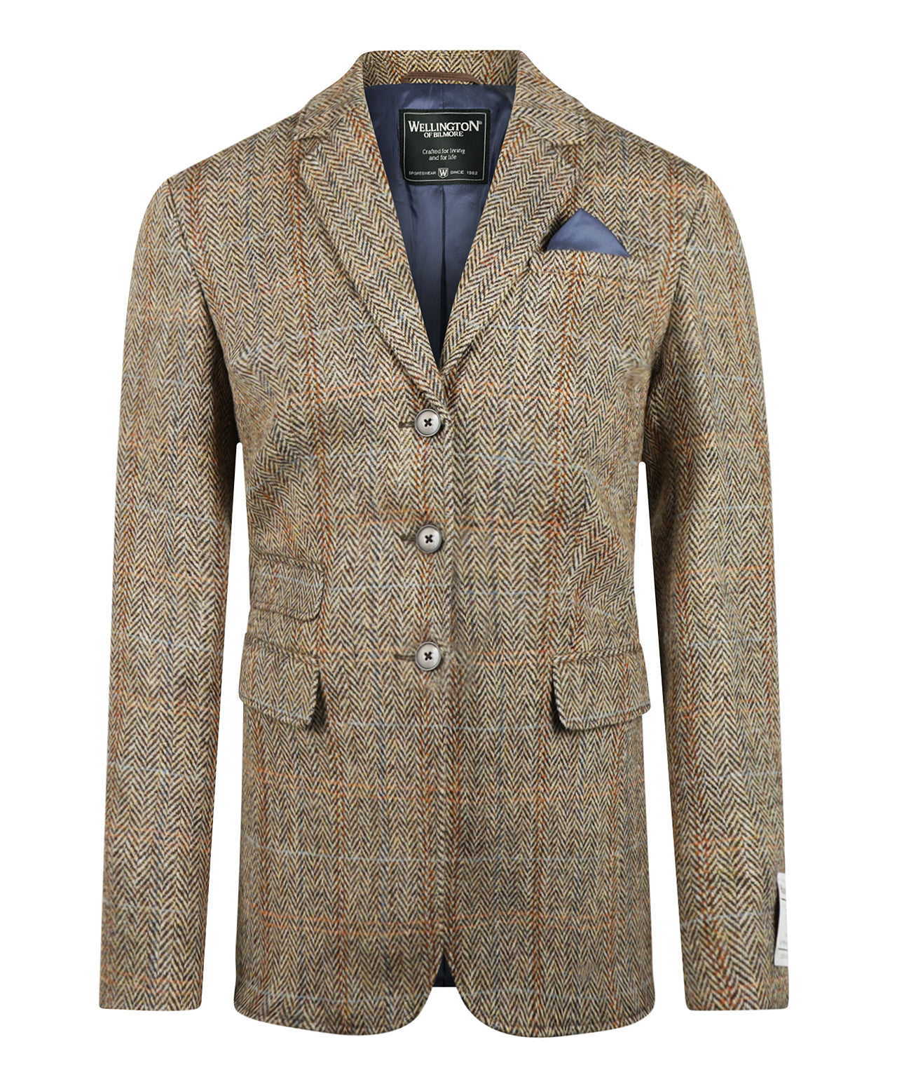 Looking for a stylish and sophisticated women's blazer? The Wellington women's blazer from Harris tweed is the perfect choice. Made from 100% pure new wool from Germany, this slim-fit design offers an elegant and tailored fit. With a classic 3-button closure, button cuffs and three practical pockets at the front (two slit pockets and a small pocket above), this blazer combines timeless style with functionality.