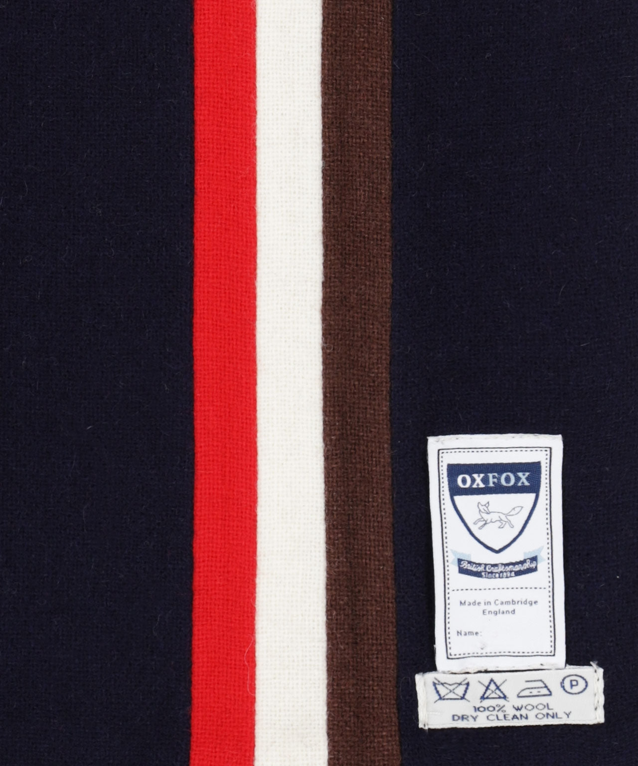 A true English classic: the college scarf. Made of sturdy wool. The scarf is over 180cm long and 26cm wide.