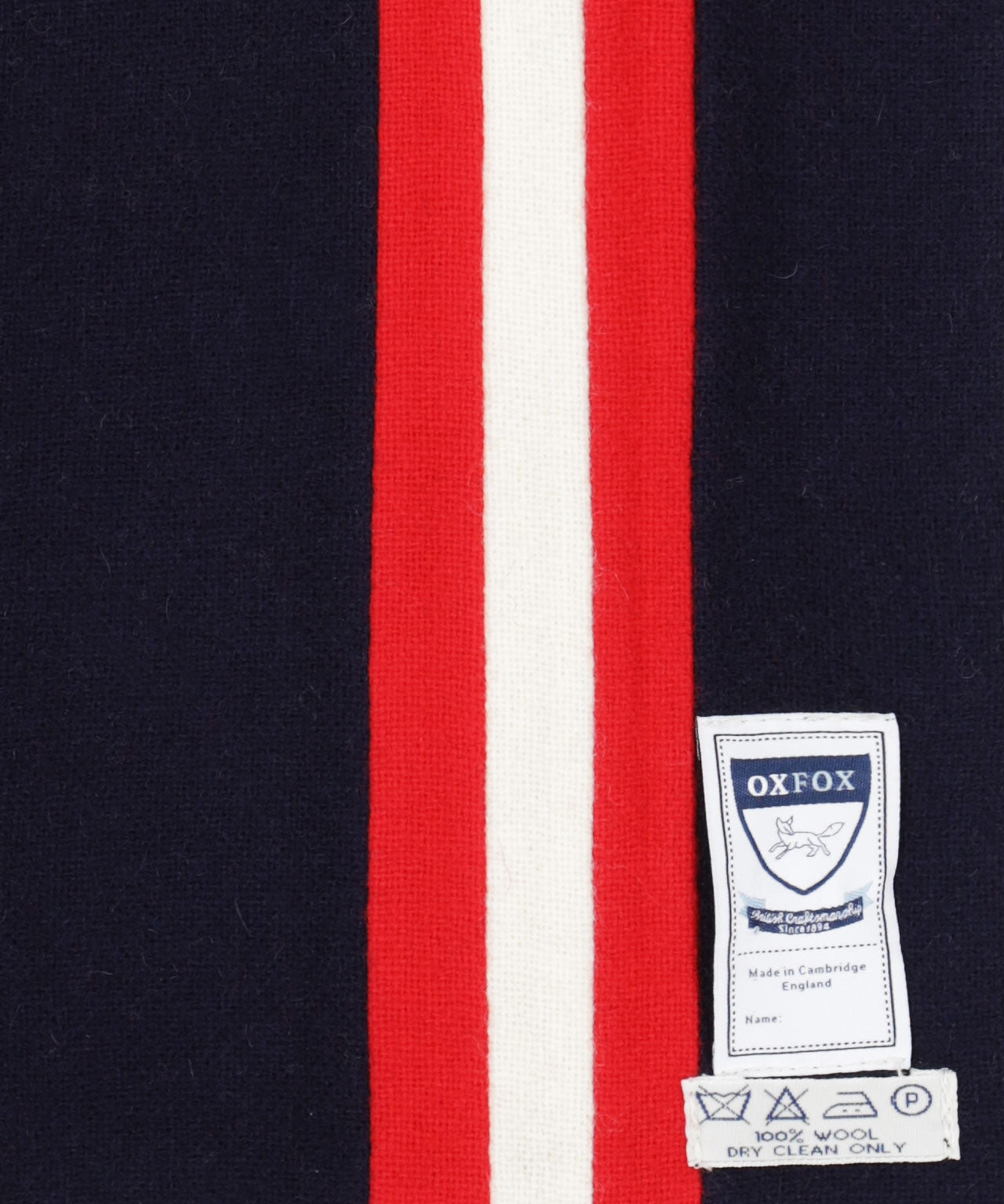 A true English classic: the college scarf. Made of sturdy wool. The scarf is over 180cm long and 26cm wide.