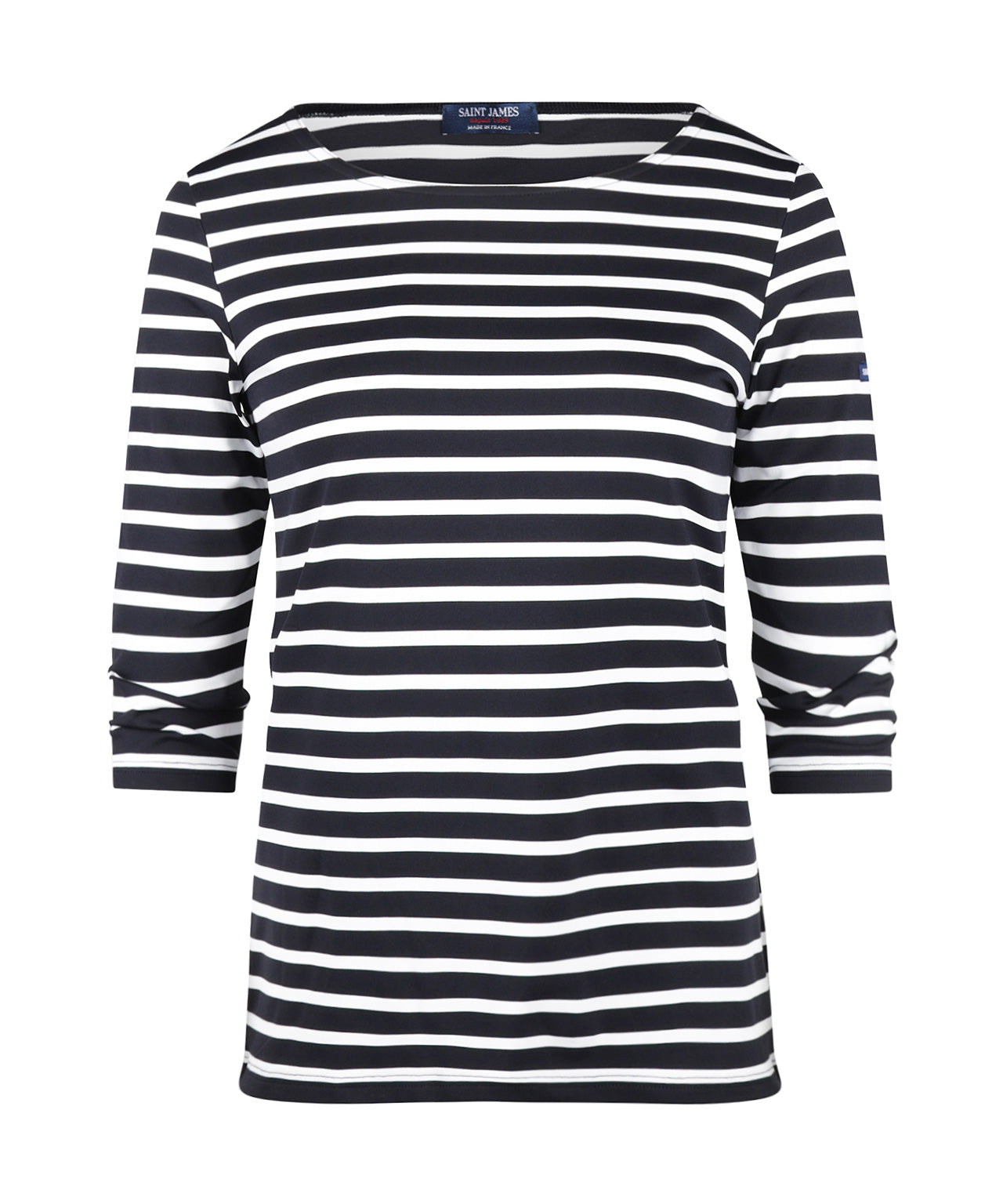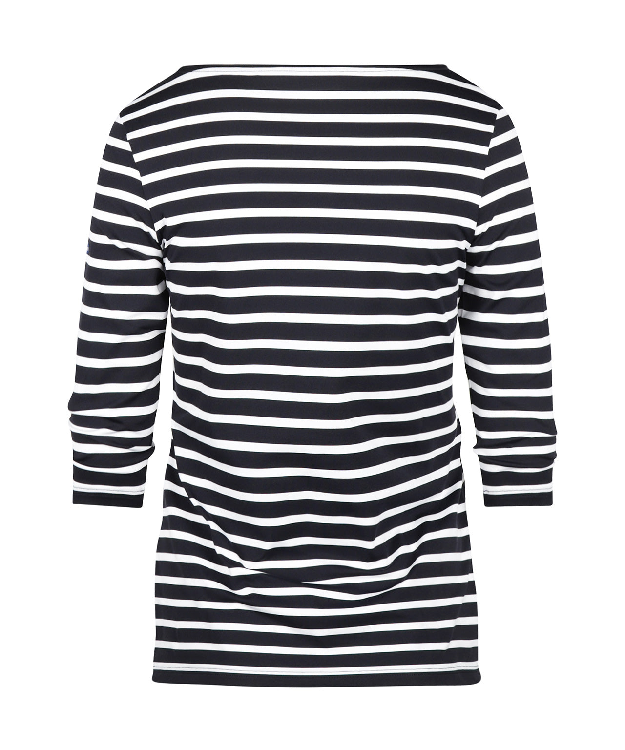 The Garde-Côte women's t-shirt gives the iconic striped sailor's sweater a sporty twist. The breathable, fitted design is UV-resistant, so you can wear it all year round with comfort and protection. The t-shirt has 3/4 sleeves, a casual crew neck and is made of polyamide microfibre (91%) and elastane (9%). At 61 cm long, it not only offers a modern fit, but also the benefits of "UVYL" UV-protective polyester, which offers twice as much protection as cotton.