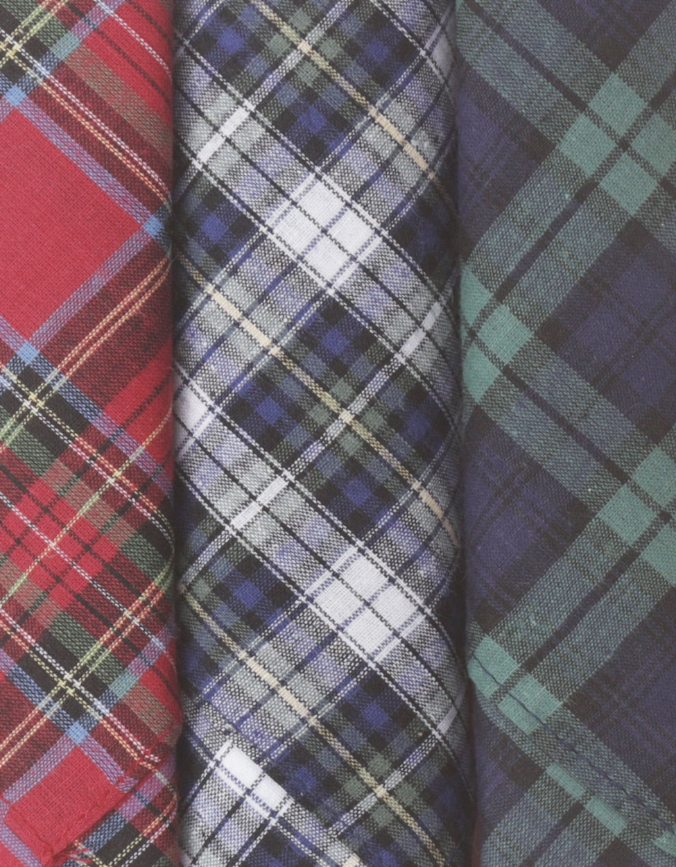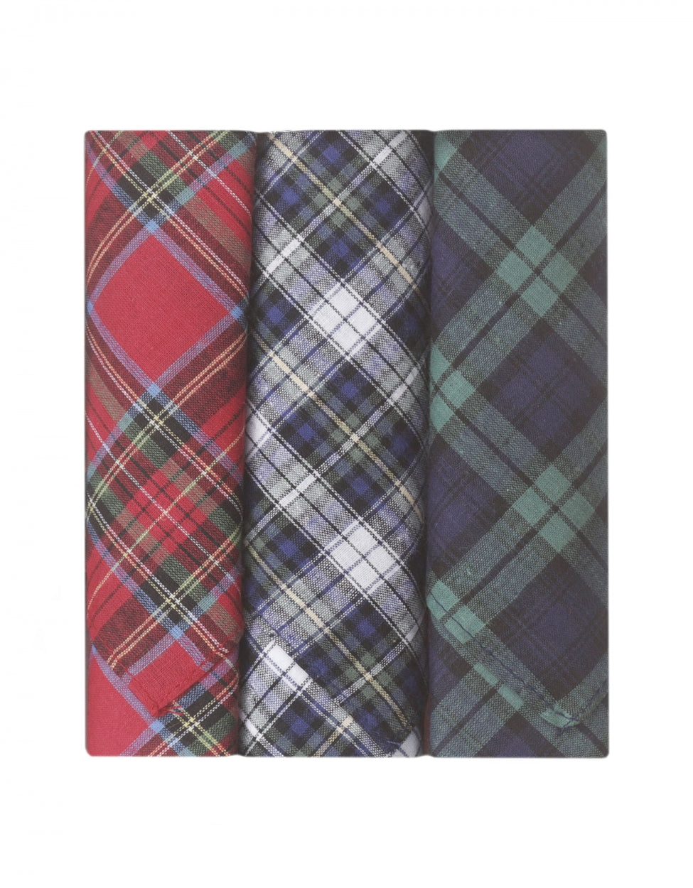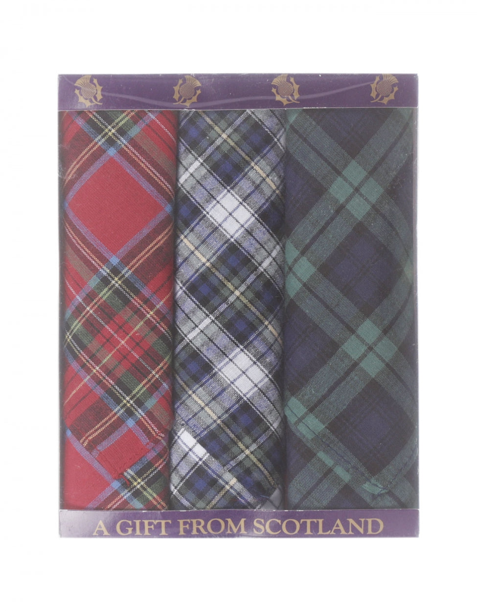 Box with 3 Scottish plaid handkerchiefs. Also nice to give as a gift.