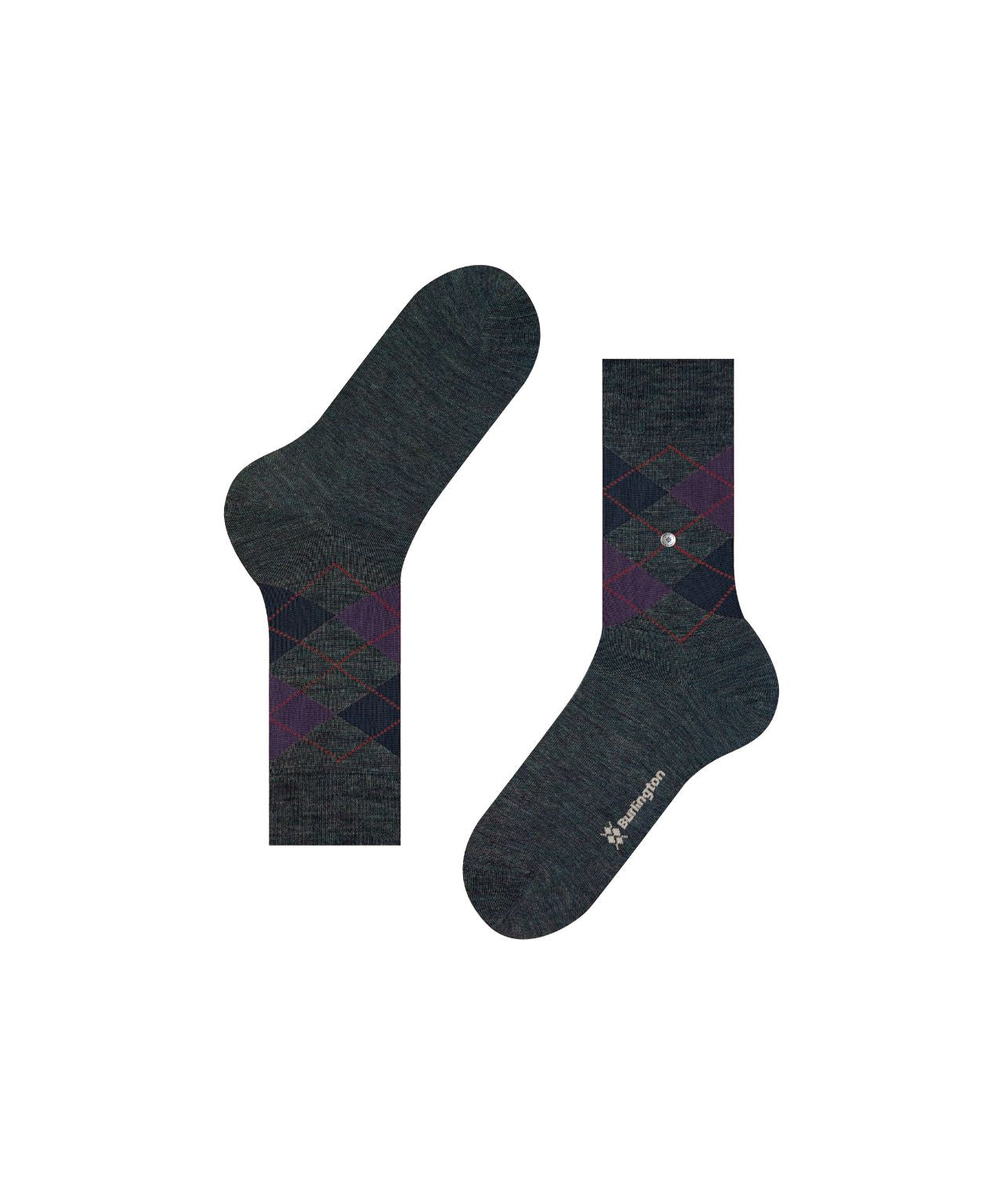 The absolute classic! The mottled socks are known for their trendy check pattern and the typical Burlington Clip. The high-quality virgin wool in the socks ensures comfort. This way you can also give a chic suit and beautiful lace-up shoes a fashionable and refined touch. Design & Extras Mixed with diamond pattern Burlington Side Clip Warm new wool Properties Gender: Male Pattern: Argyle Transparency: Opaque Material: 63% New Wool, 37% Polyamide Look: Smooth Shaft Length: Calf Wearing comfort: Skin-friendly Type of board: rib Padding: None Sole: Normal Style: Casual