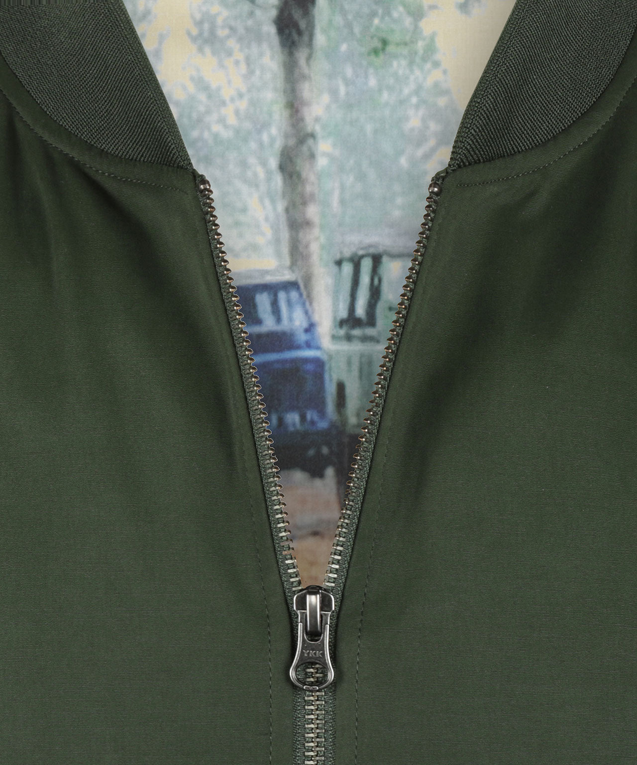 Wellington kort sportief jack met een gebreid bord aan de onderzijde van het jack en aan de mouwen,. Voorzien van 2 steekzakken en een binnenzak. De voering heeft een print van oude Land Rovers.