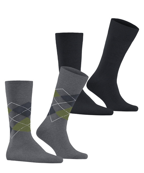 The duo pack contains a pair of soft cotton socks with a stylish argyle pattern and in classic solid colours. The combed cotton guarantees absolute wearing comfort every day. You simply cannot leave this duo pack behind! Duo pack = 1 pair of argyle socks + 1 pair of plain socks. Classic colour range. Burlington clip. Quality for every season in combed cotton.