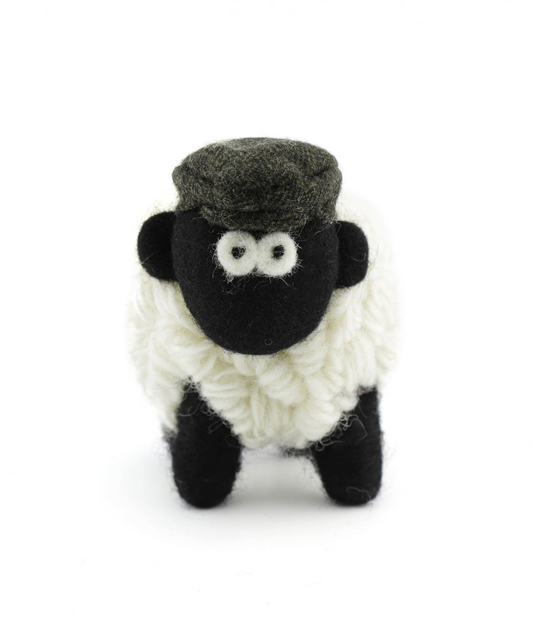 Cute little sheep with a funny hat. These sheep are about 10cm high and 10cm long. They are handmade in Ireland