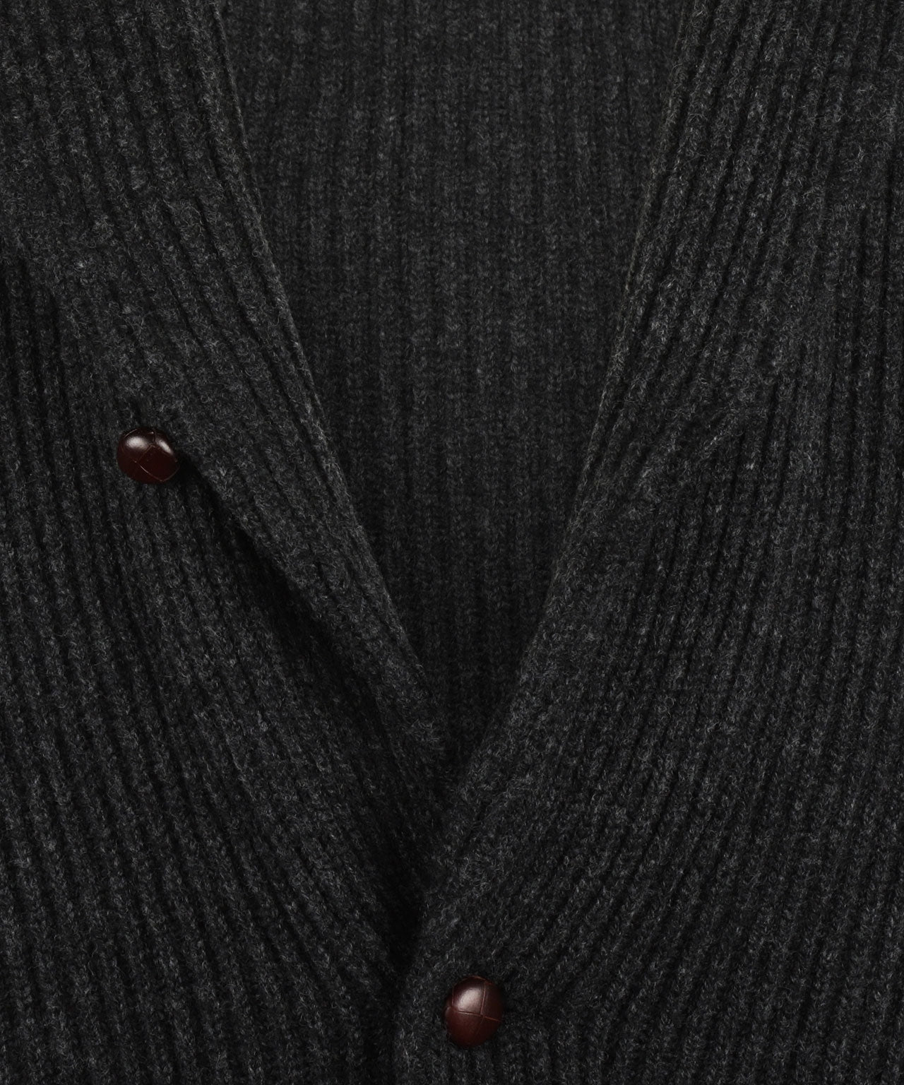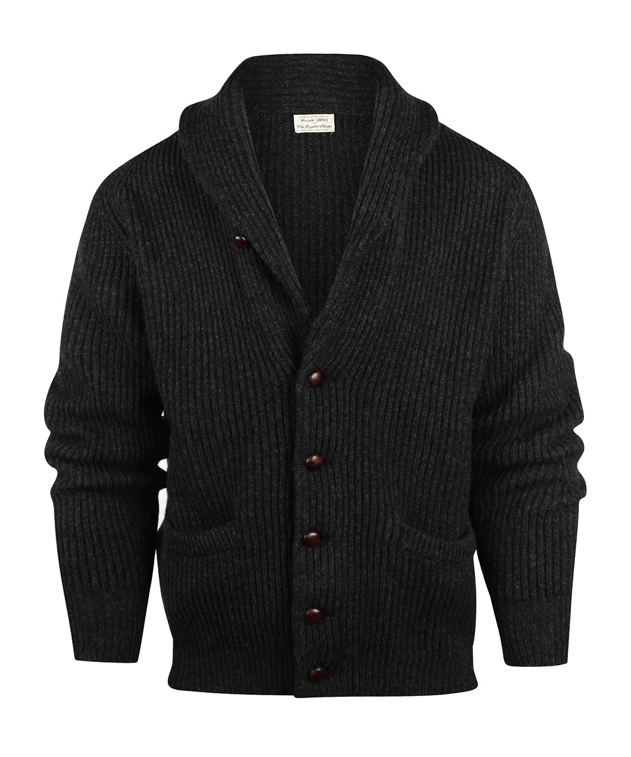 A warm and comfortable cardigan with shawl collar and raglan sleeves. The fit is quite traditional. The vest is made of 4 ply Geelong Lambswool, and has 2 pockets on the front.