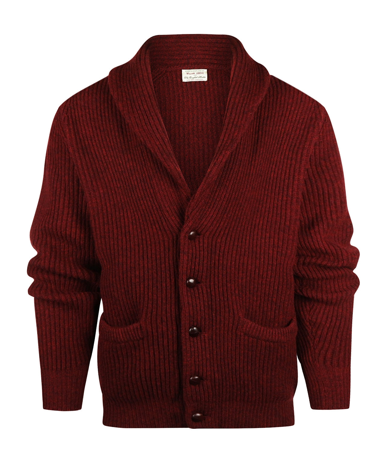 A warm and comfortable cardigan with shawl collar and raglan sleeves. The fit is quite traditional. The vest is made of 4 ply Geelong Lambswool, and has 2 pockets on the front.