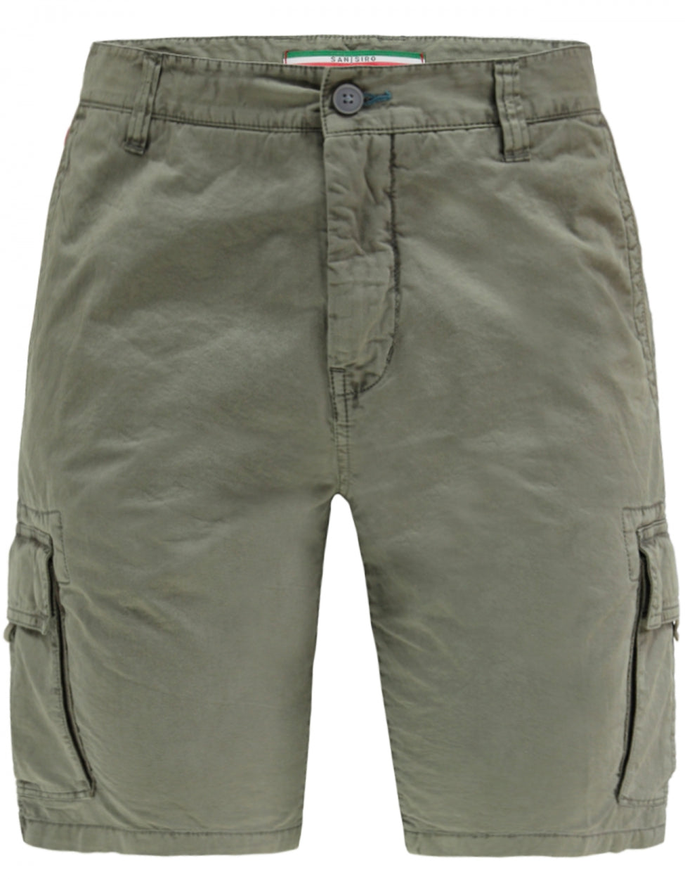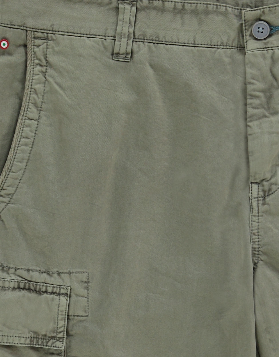 Fine cotton Bermuda shorts with sturdy "cargo" pockets sewn on the side.