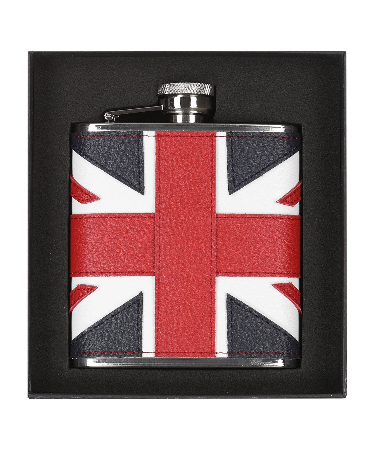 Nice to give as a gift, a hip flask in a leather flag pattern.