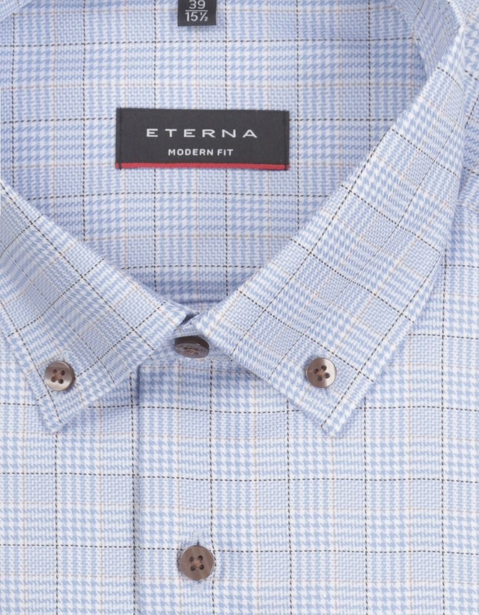 Cotton shirt by Eterna with a button down collar. This shirt has a modern fit (slightly fitted) and has a breast pocket.