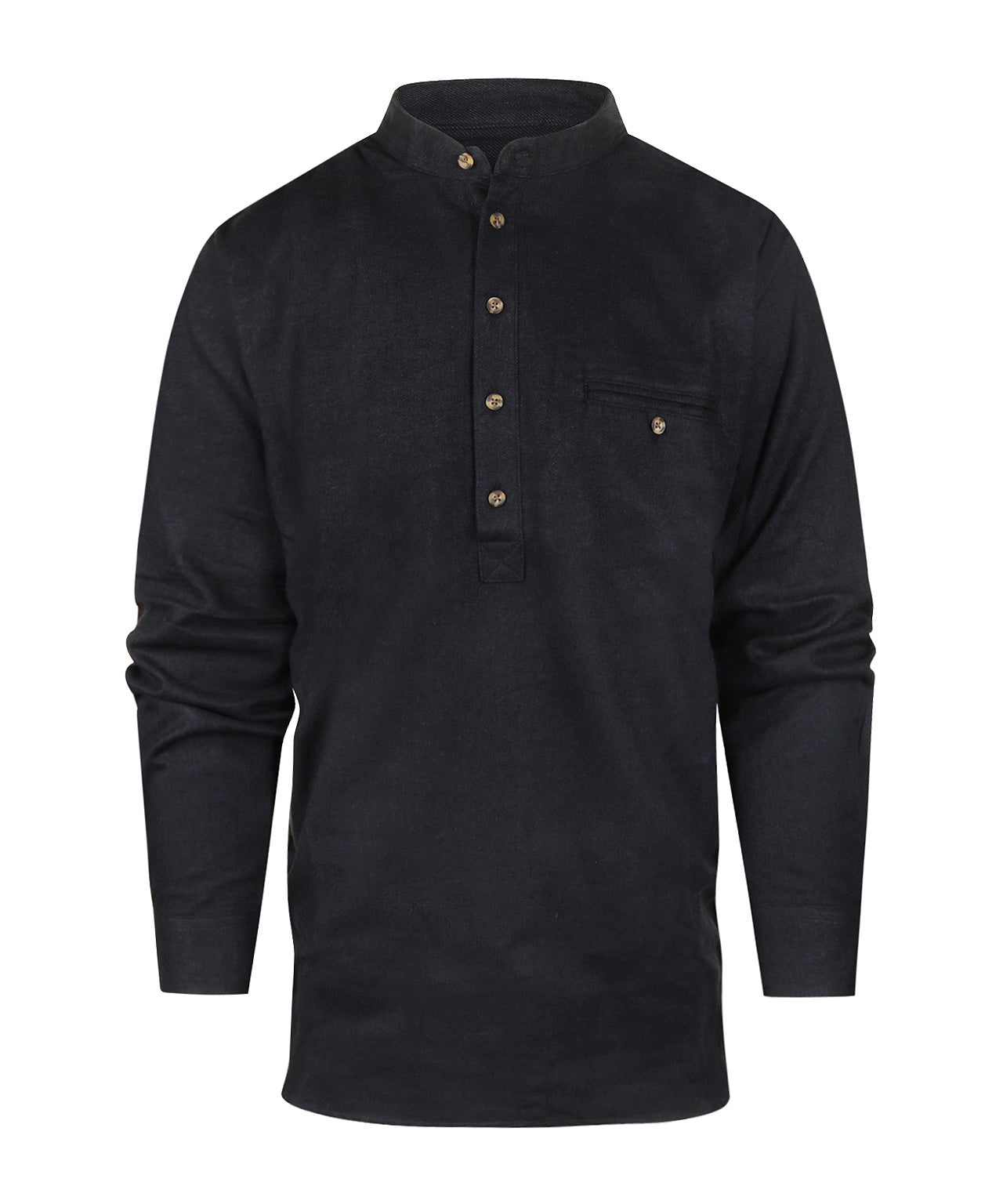 Cotton "Grandfather shirt" by the Irish brand Lee Valley. This casual shirt is characterized by a stand-up collar and the sturdy cotton. The grandfather shirts have a straight fit and are therefore spacious. We have them in 2 qualities of cotton: "smooth" cotton which has a full button placket and the flannel cotton, which has a short button placket.
