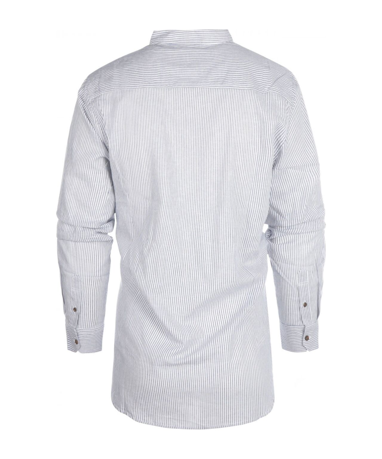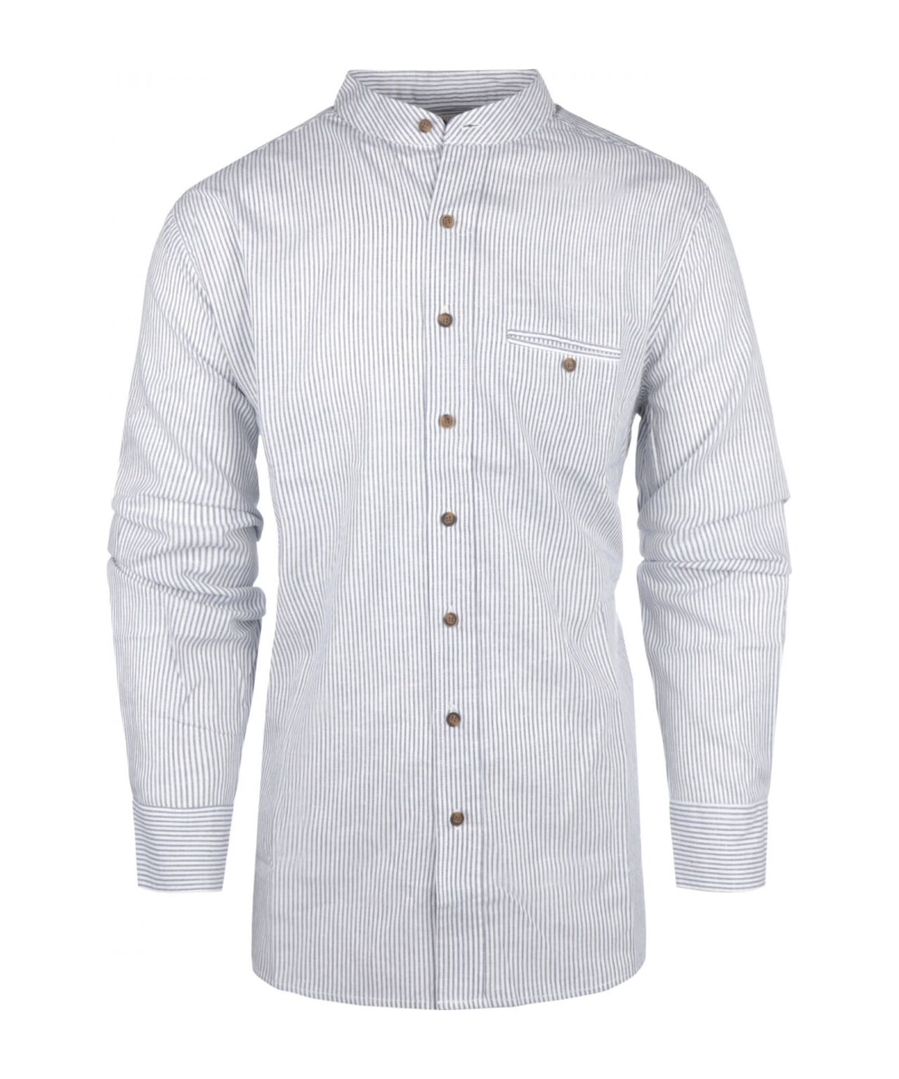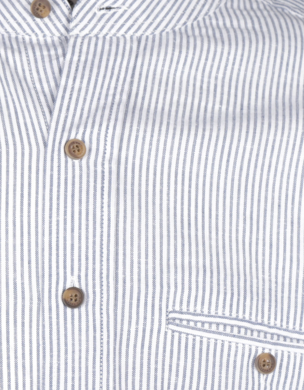 100% linen shirt with stand-up collar by the Irish brand Lee Valley. This shirt has a loose fit.