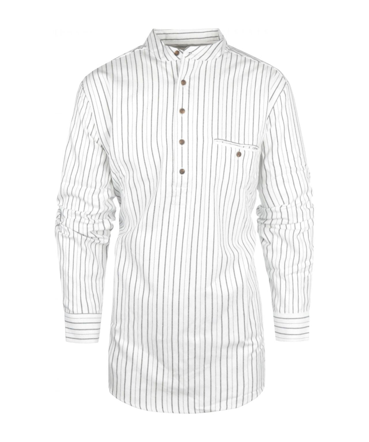 Cotton "Grandfather shirt" by the Irish brand Lee Valley. This casual shirt is characterized by a stand-up collar and the sturdy cotton. The grandfather shirts have a straight fit and are therefore spacious. We have them in 2 qualities of cotton: "smooth" cotton which has a full button placket and the flannel cotton, which has a short button placket.