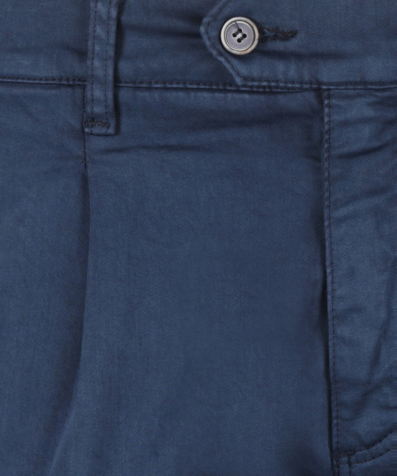 Cotton trousers with pleat and a turn-up. The cotton contains 3% elastane woven into it, making these trousers comfortable to wear. These trousers are made especially for The English Hatter in Europe. The width of the leg at the turn-up is 19 cm (measured flat).