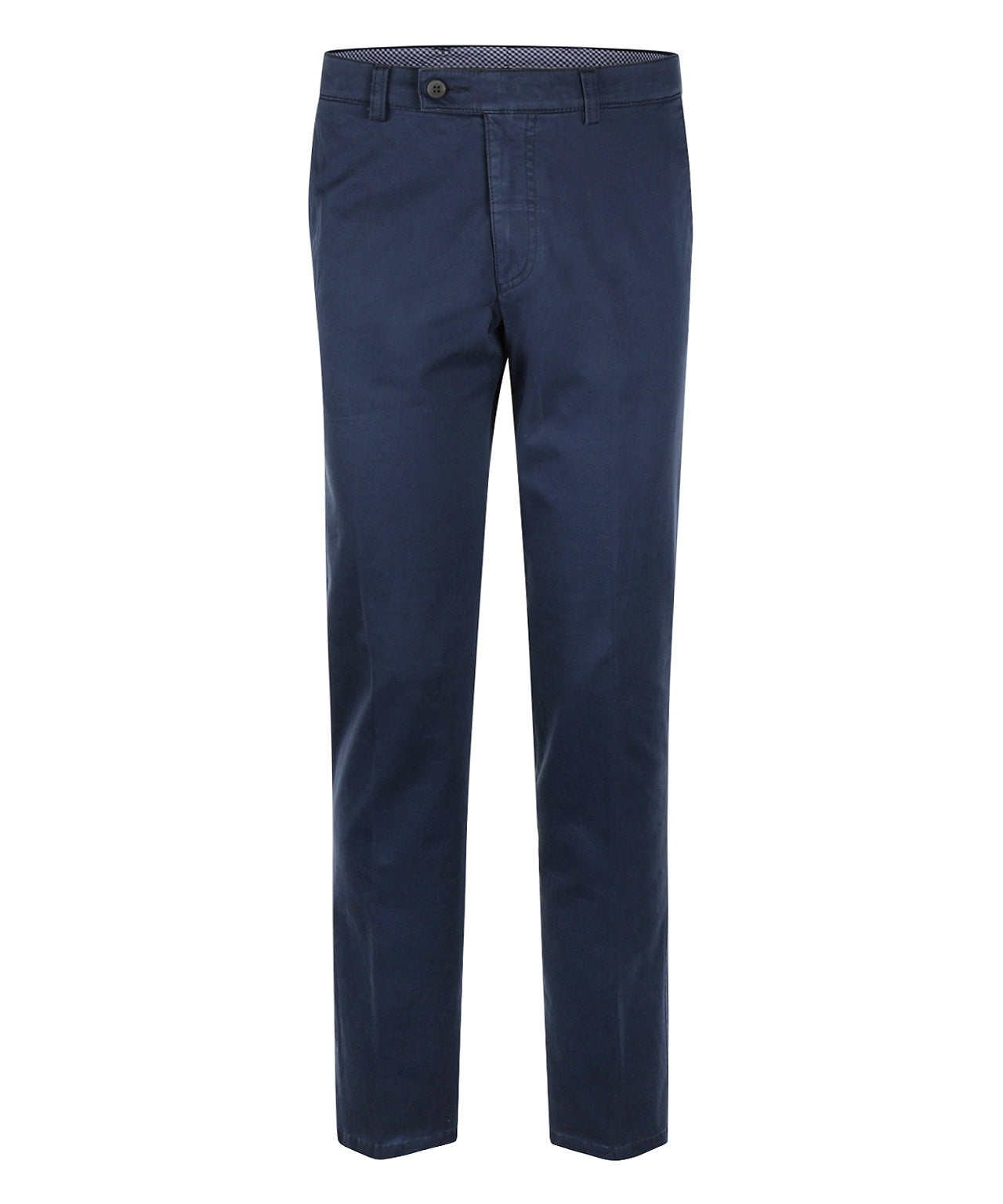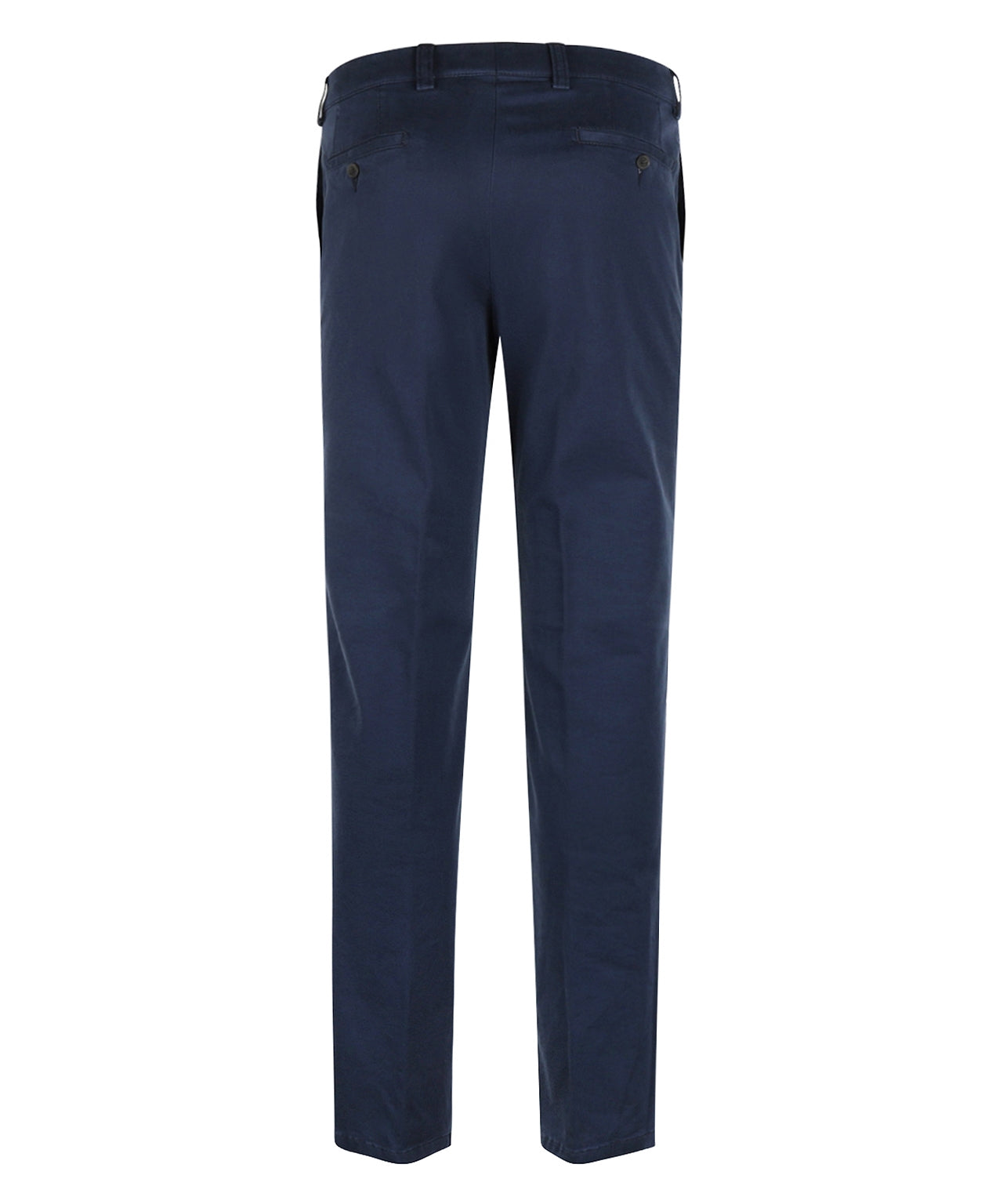 Stylish cotton chino that you can wear both business and leisure. The chino is made with 1% elastane for a little bit of stretch, which makes the chino comfortable. At the front you will find 2 pockets and the chino also has 2 back pockets that are closed with a button. The chino is made of a somewhat fuller cotton and can therefore be worn almost all year round in our climate. The Leeds is the chino variant of our Blackpool trousers. The pipe opening for the foot is 19cm when measured flat.