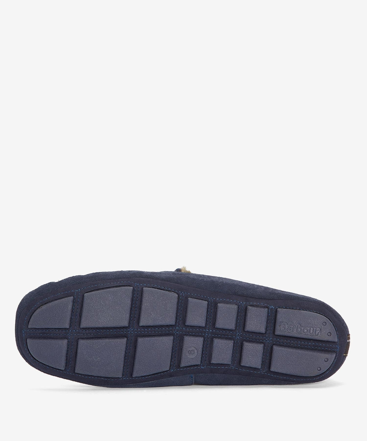 Barbour slippers made of suede with a warm wool lining. The Barbour slippers are equipped with an anti-slip synthetic sole.