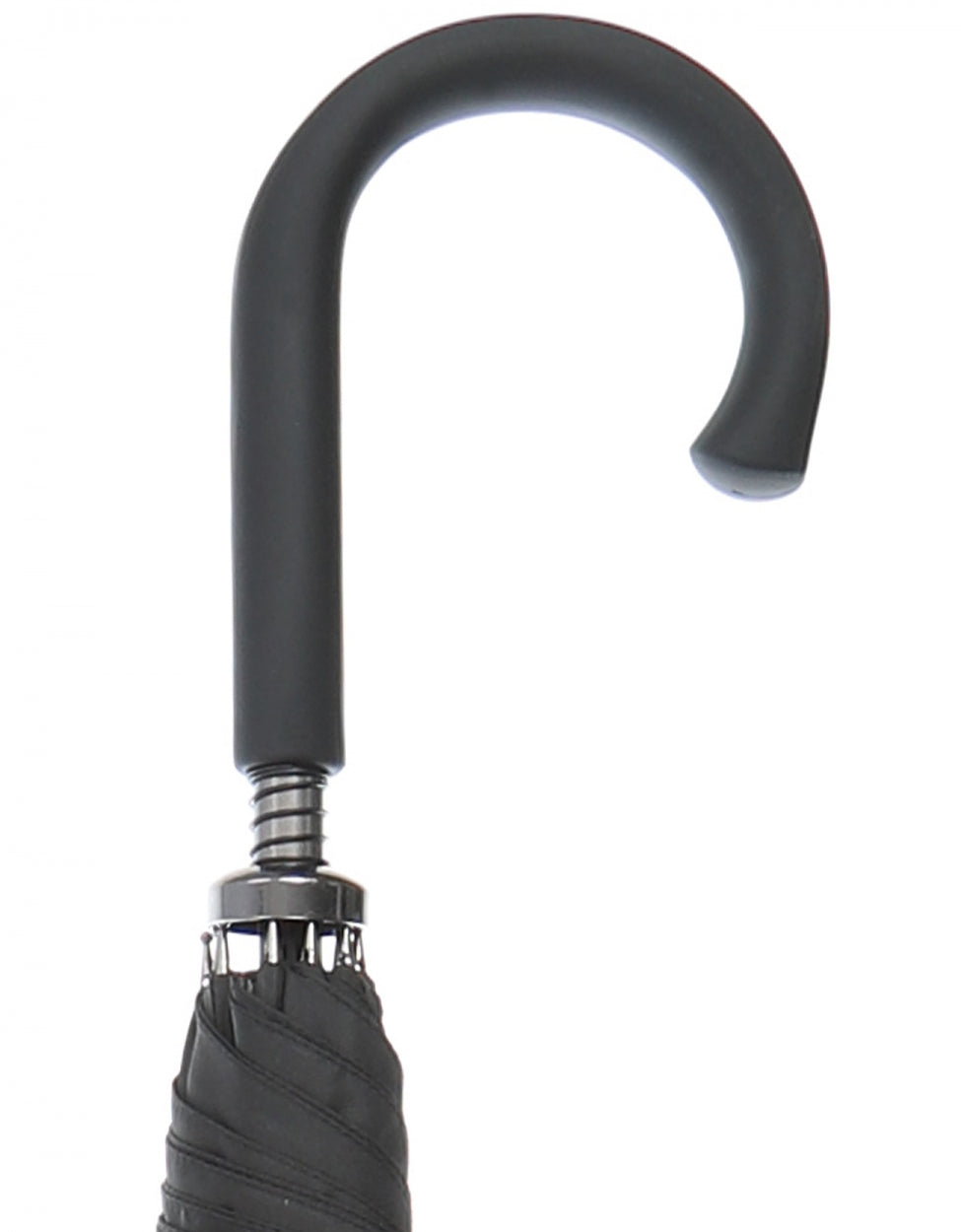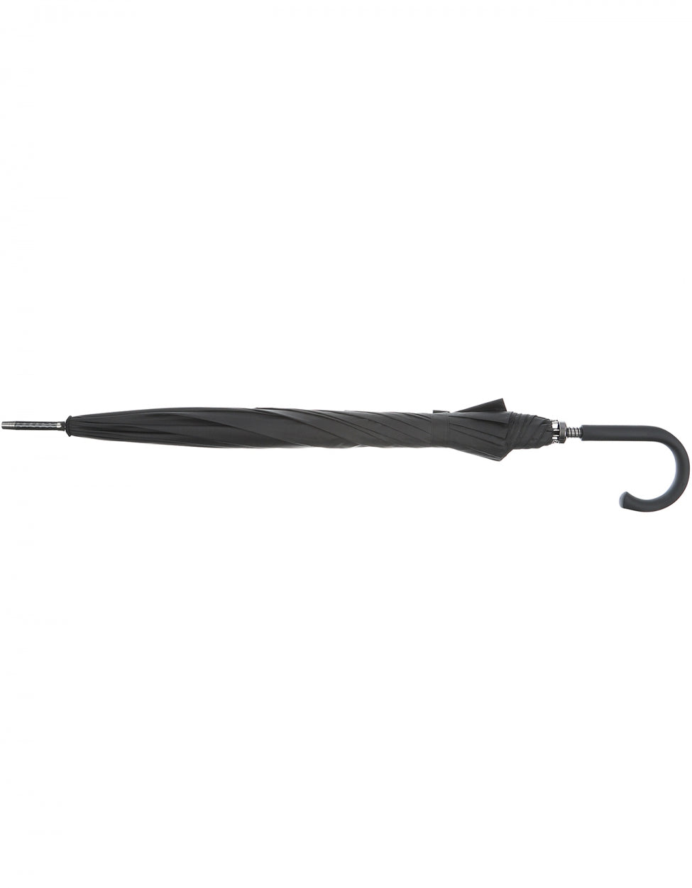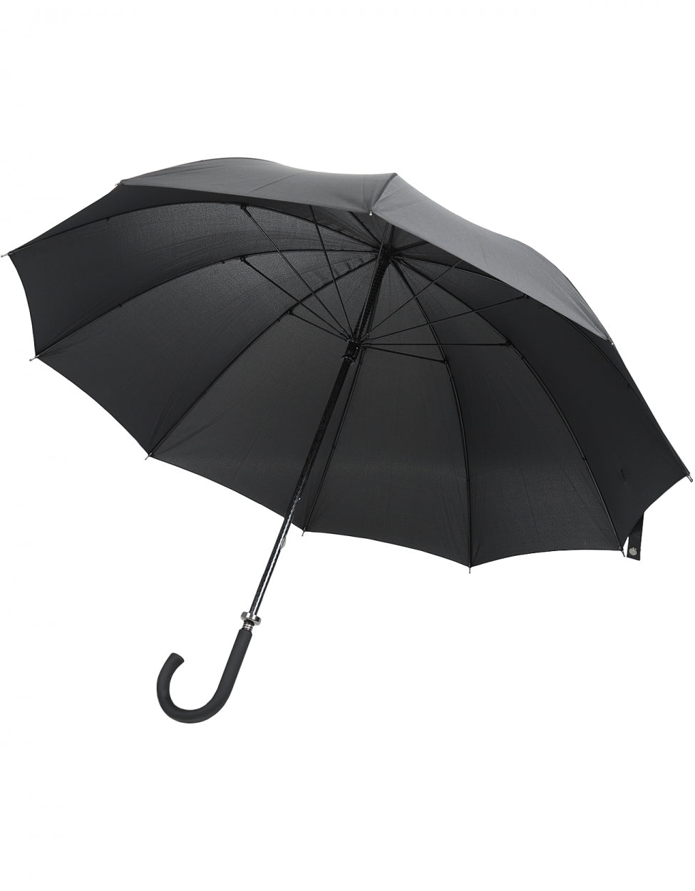 Black stylish umbrella. You open the umbrella manually. The umbrella has a carbon fiber shaft with a black plastic handle.