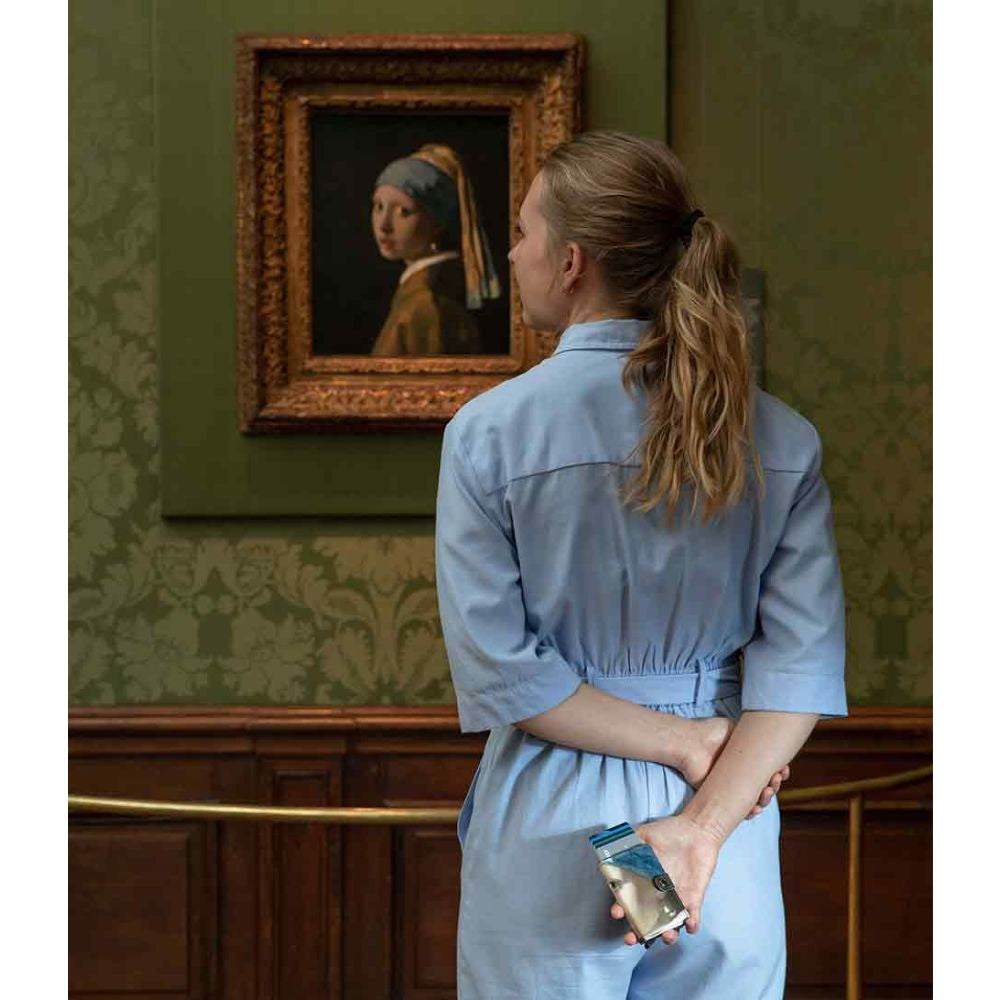 Our most iconic wallet and the perfect all-rounder: small in size and surprisingly large in storage capacity. With all its colours and styles, the Miniwallet fits in every trouser pocket. The patented mechanism gives access to your cards with one simple movement: ready to use. The aluminium casing protects cards from bending, breaking and unwanted wireless communication. Featuring a print of paintings hanging in the Netherlands. Made of supple calf leather in the Netherlands.