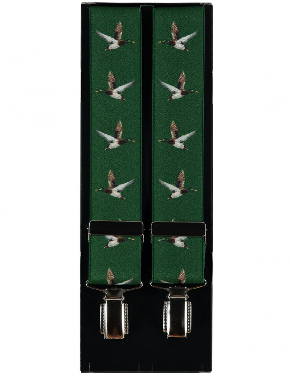Printed elastic braces from England. These braces have 2 clips on the front and 2 clips on the back. The braces are 3.5 cm wide.