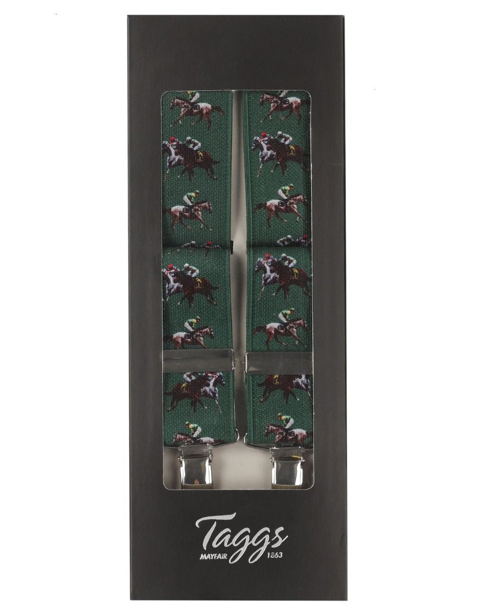 Printed elastic braces from England. These braces have 2 clips on the front and 2 clips on the back. The braces are 3.5 cm wide.