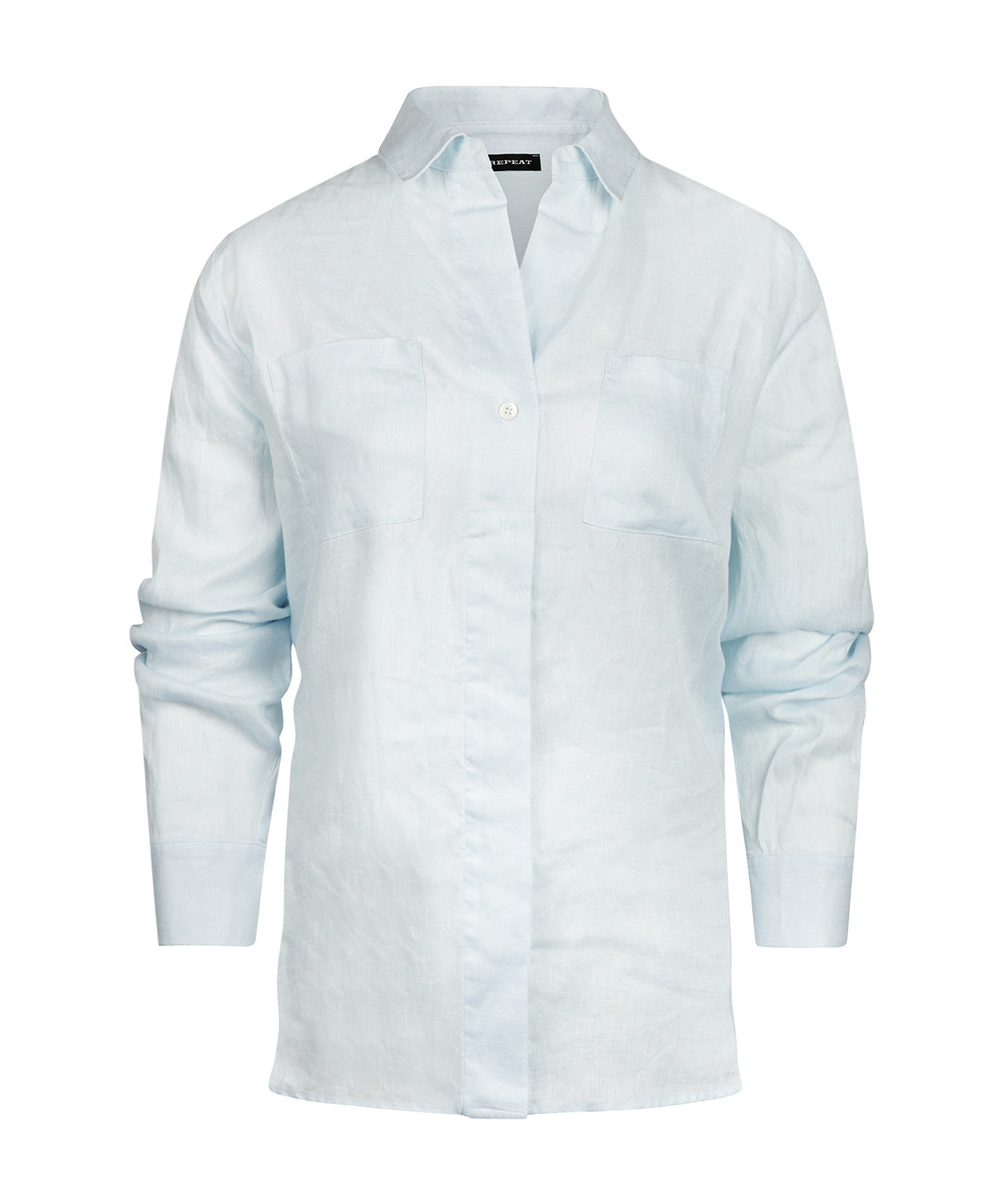 The Linen Women's Blouse is made of 100% linen and has a modern fit for a refined look. This long sleeve blouse has a chest pocket and a regular collar, making it both stylish and comfortable for warm days.