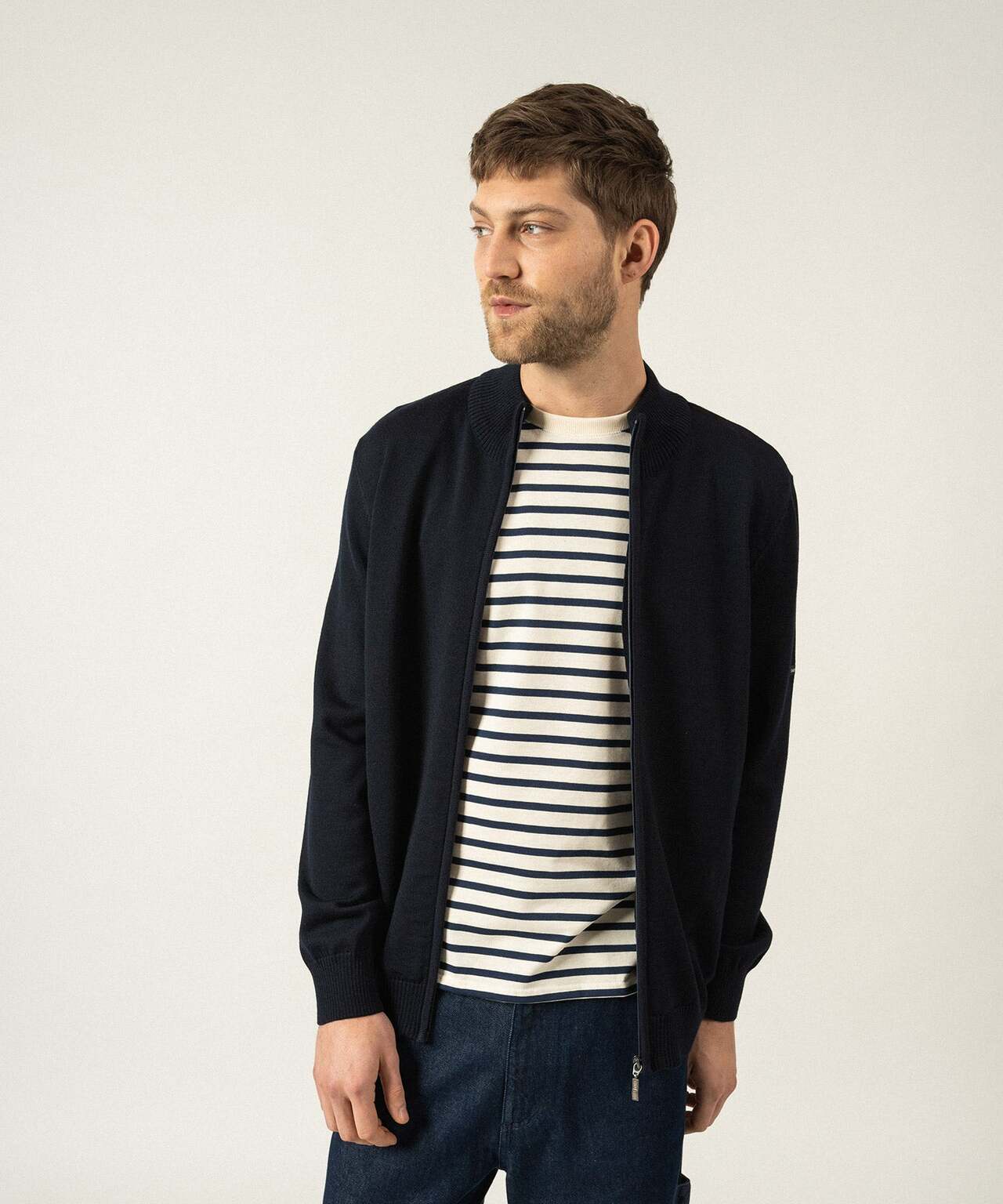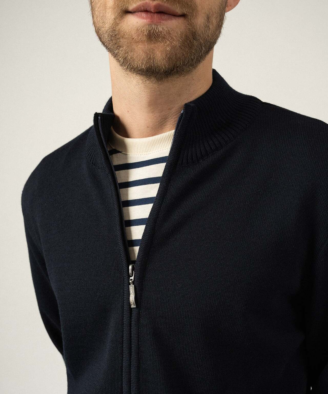 Cool vest from Saint James, made of 100% wool and provided with a zipper. It is a vest for everyday use, the vest is not too thick and not too thin. Not for nothing the best-selling vest from Saint James. The Colorado vest is a simple, timeless piece. Characterized by the zip and welt pockets, it is practical and easy to wear. The inner collar has a contrasting edge, for an elegant touch. - Jersey - Jacket with zipper - High neck - Piped pockets - Contrasting inner collar - Ribbed trim at neck, cuffs and bottom - Comfortable wool (100%) - Regular fit - Length: 72 cm
