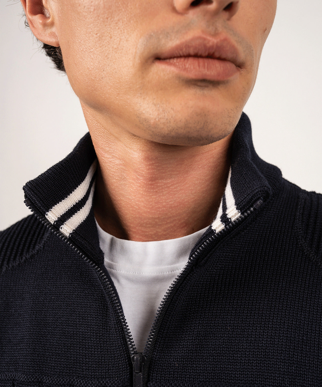 Luxurious vest from Saint James made of merino wool in France. The vest has a handy zipper and a beautiful cable pattern.