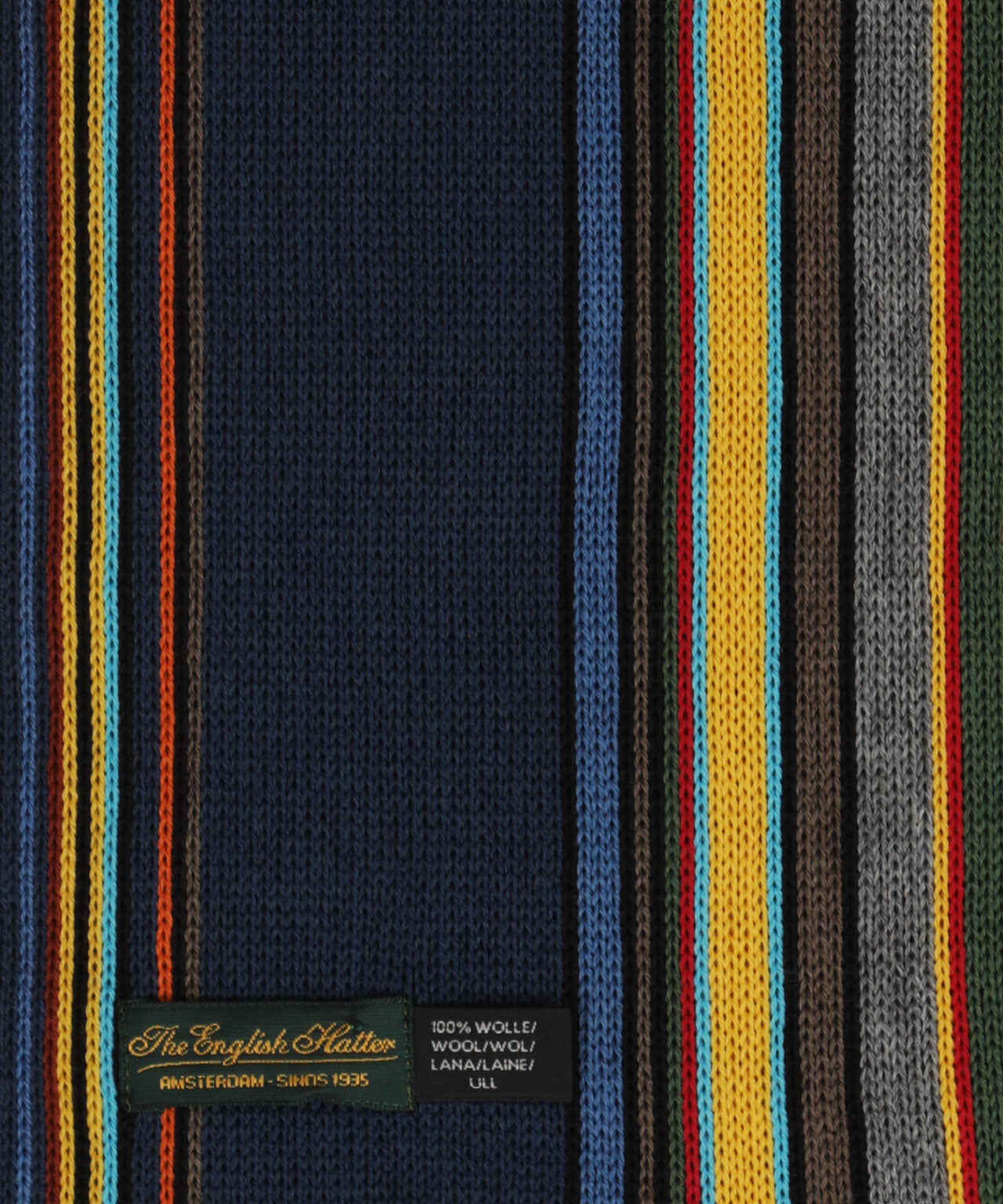 Nice colorful knitted scarf of wool. The scarf is about 26cm wide and 180cm long.