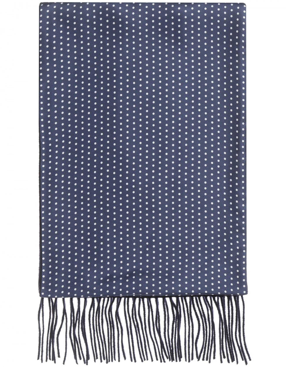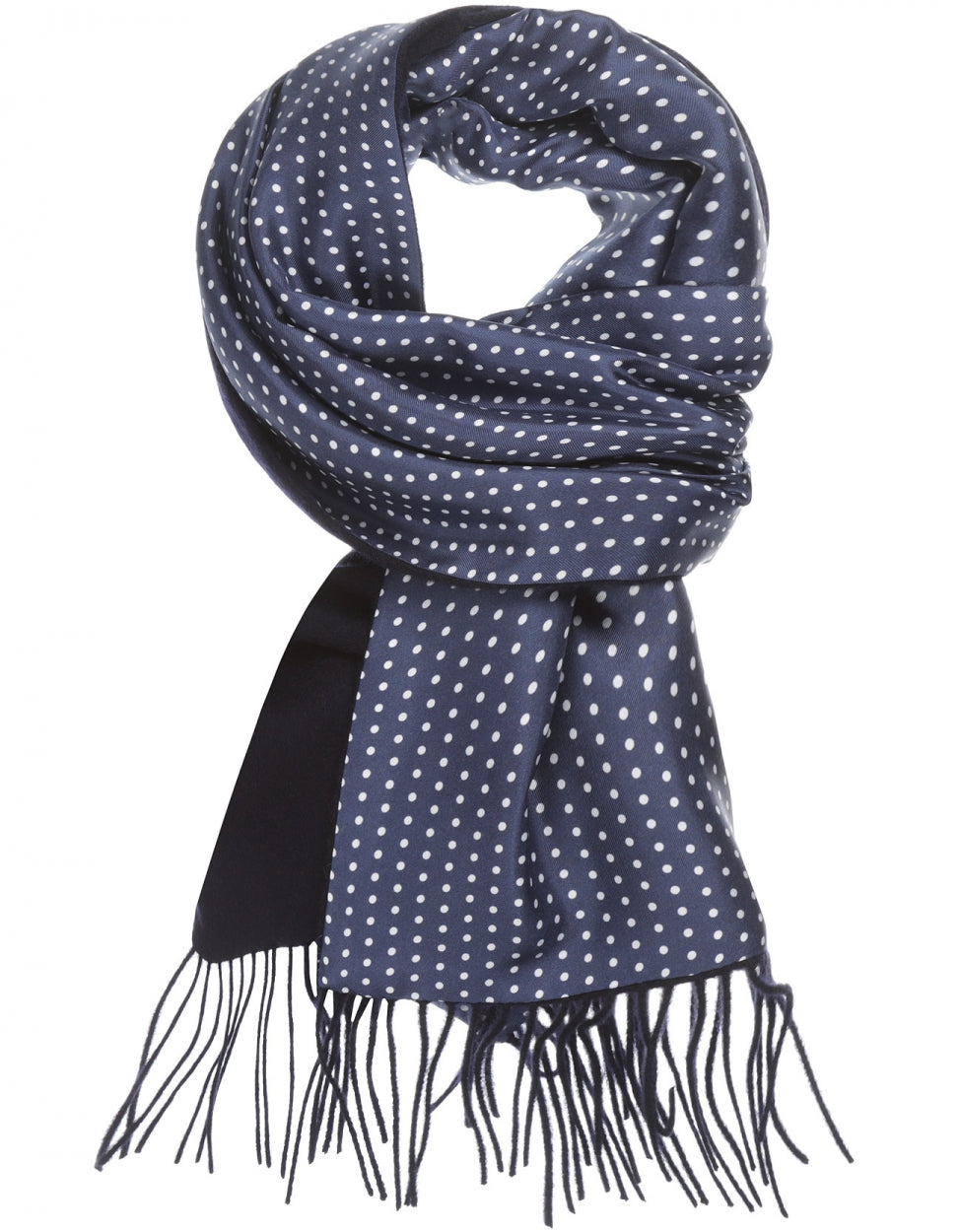 Silk scarf with a lambswool backing printed with classic dots. The scarf is 28 cm wide and 150 cm long. 100% silk, 100% lambswool.
