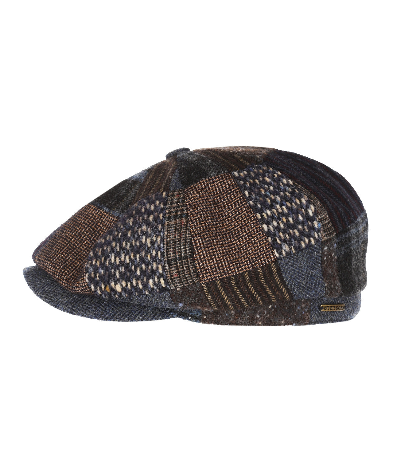 Patchwork balloon cap, model Hatteras by Stetson. Made of various fabrics: 50% wool, 17% cotton, 15% polyester, 10% linen, 5% silk and 3% polyamide.