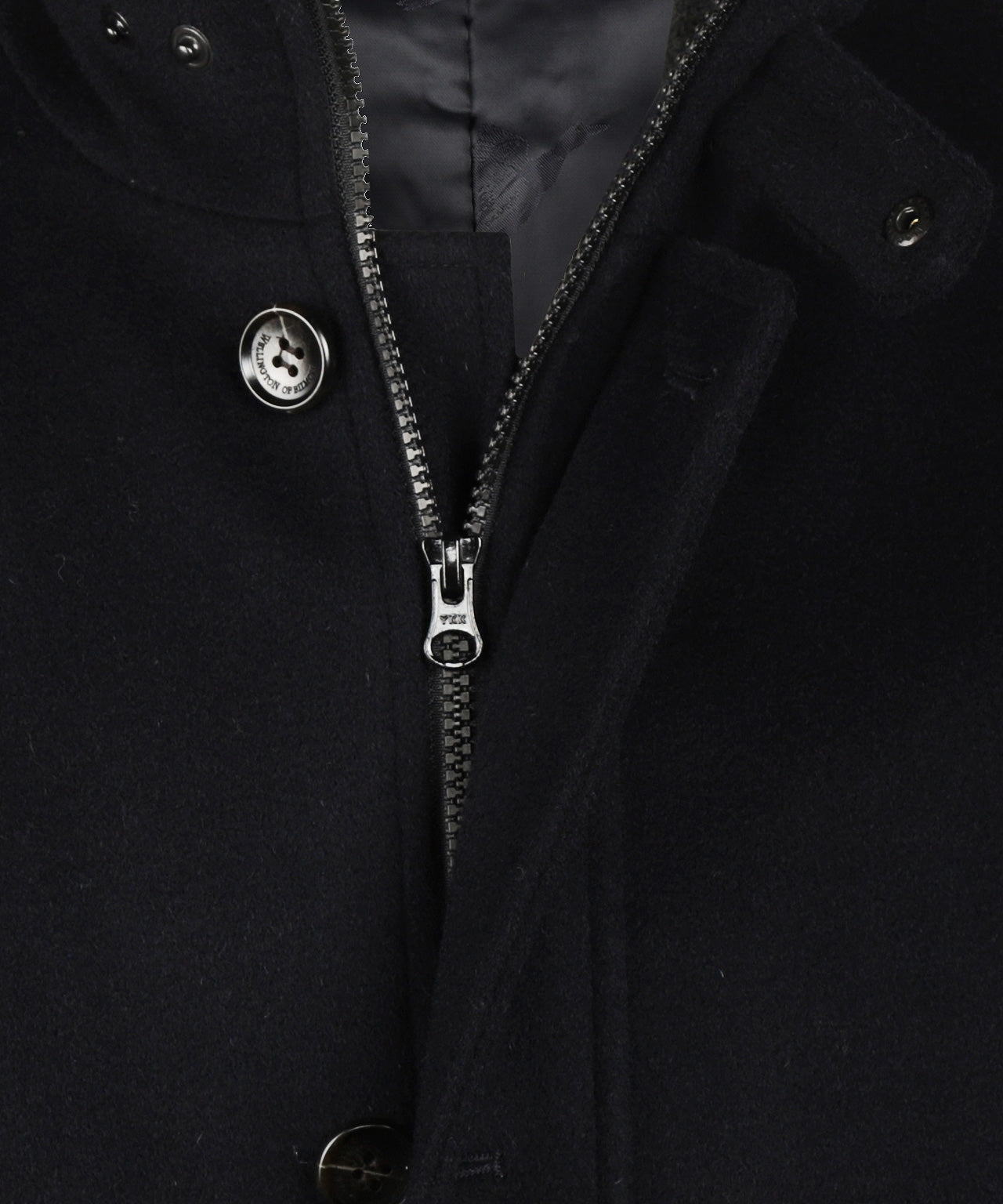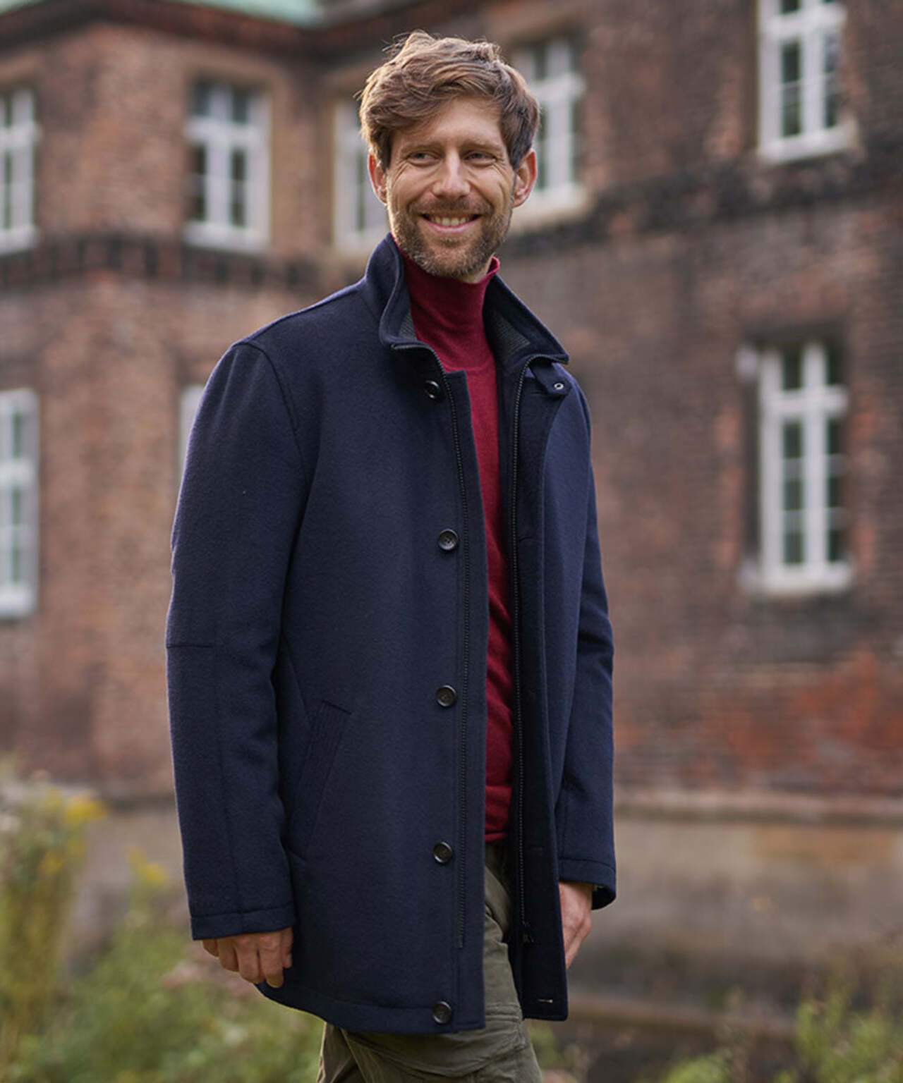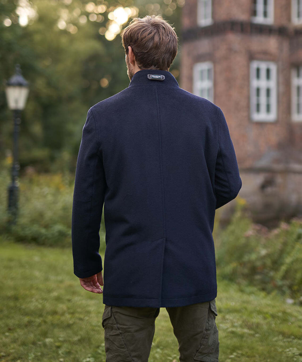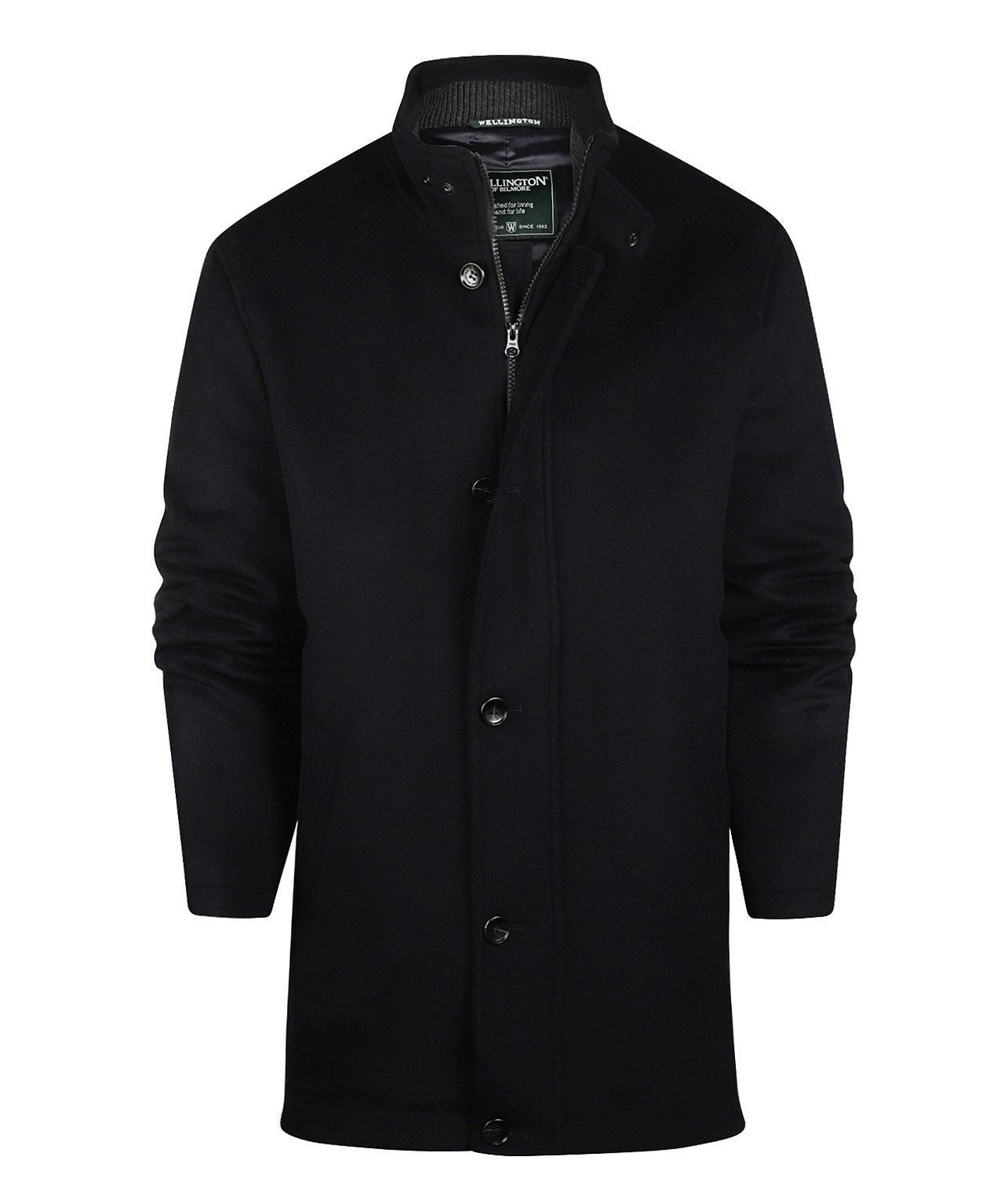 Smooth modern wool coat from Wellington. This coat is made of wool with 10% cashmere. The coat has both a button closure and a zipper. In the coat you will find two spacious inner pockets.