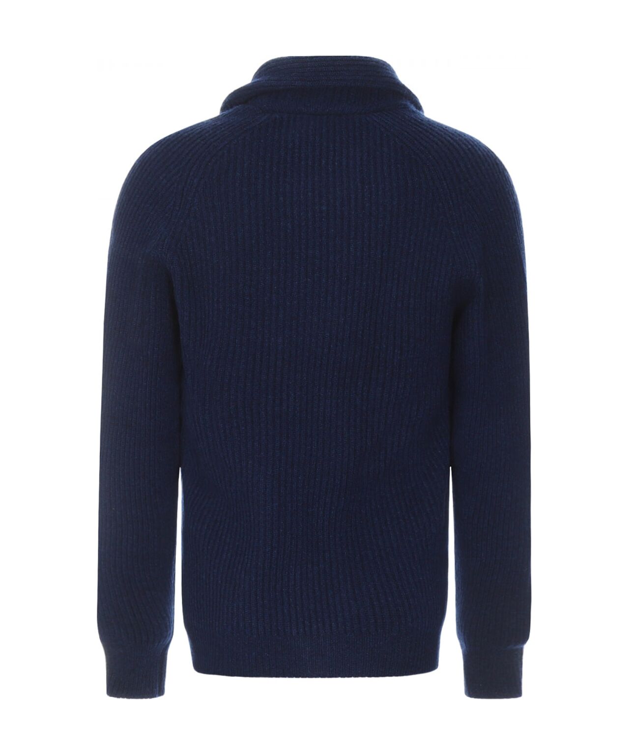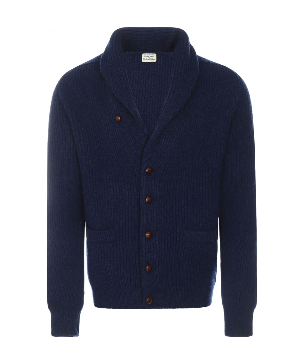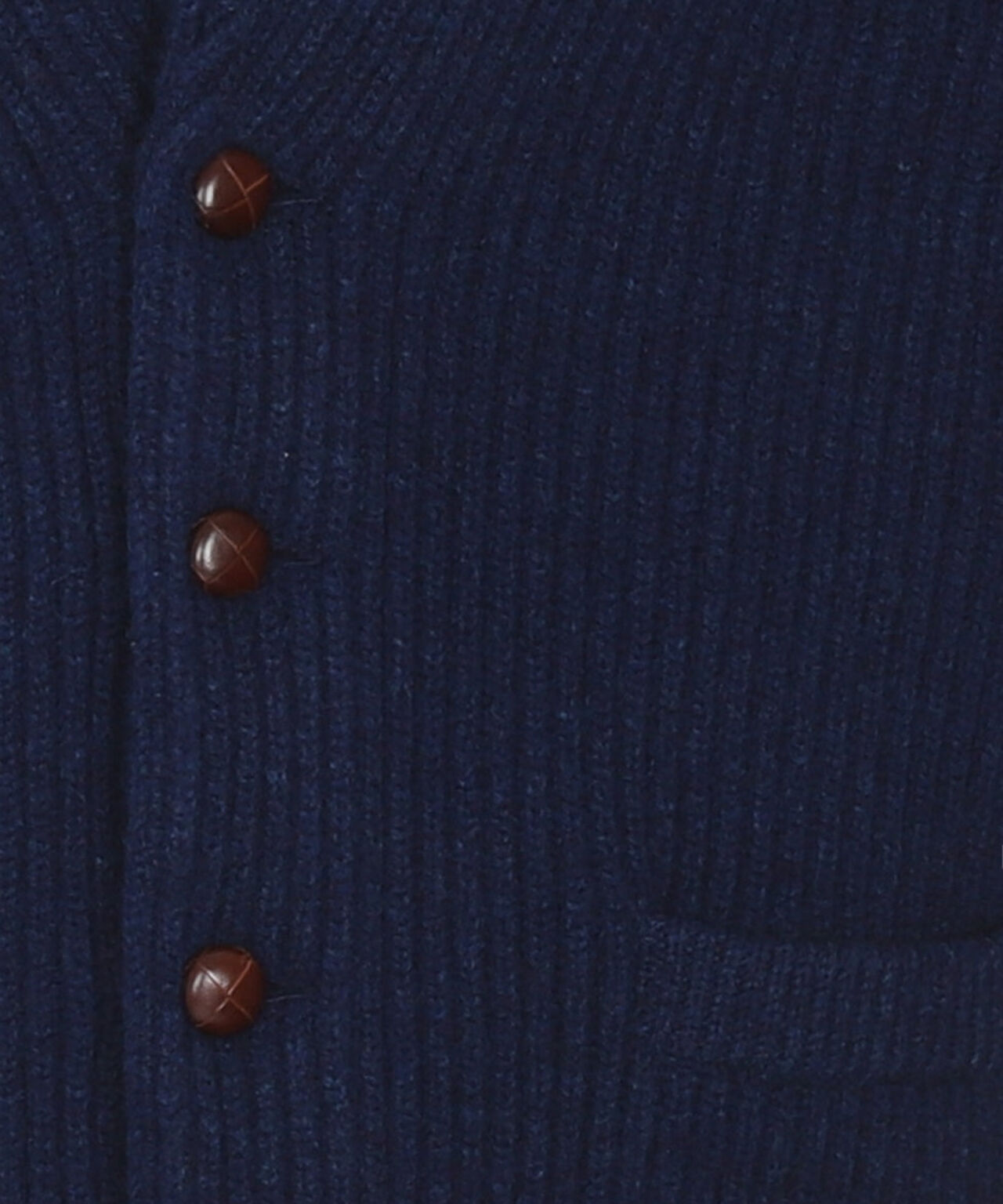 A warm and comfortable cardigan with shawl collar and raglan sleeves. The fit is quite traditional. The vest is made of 4 ply Geelong Lambswool, and has 2 pockets on the front.