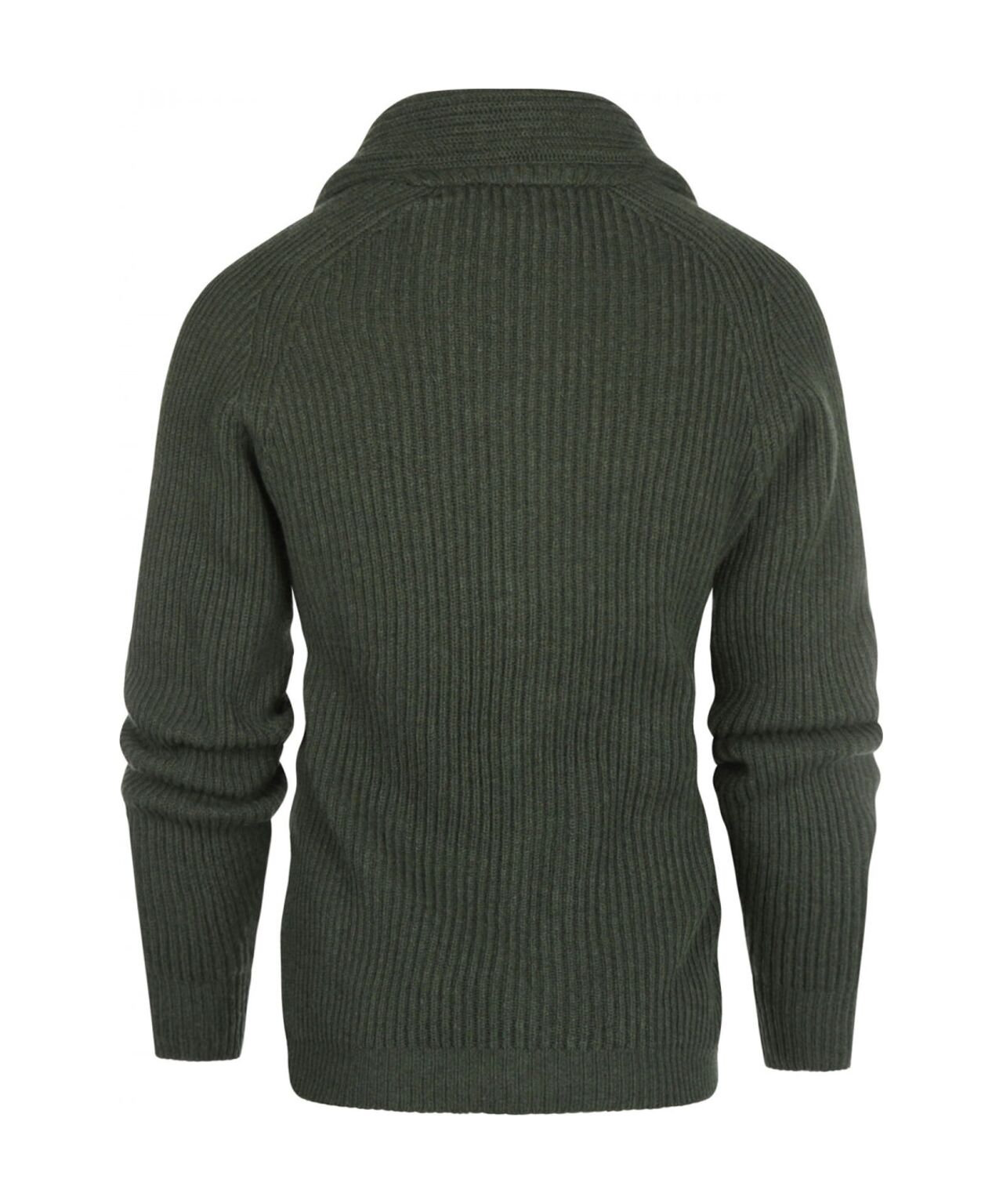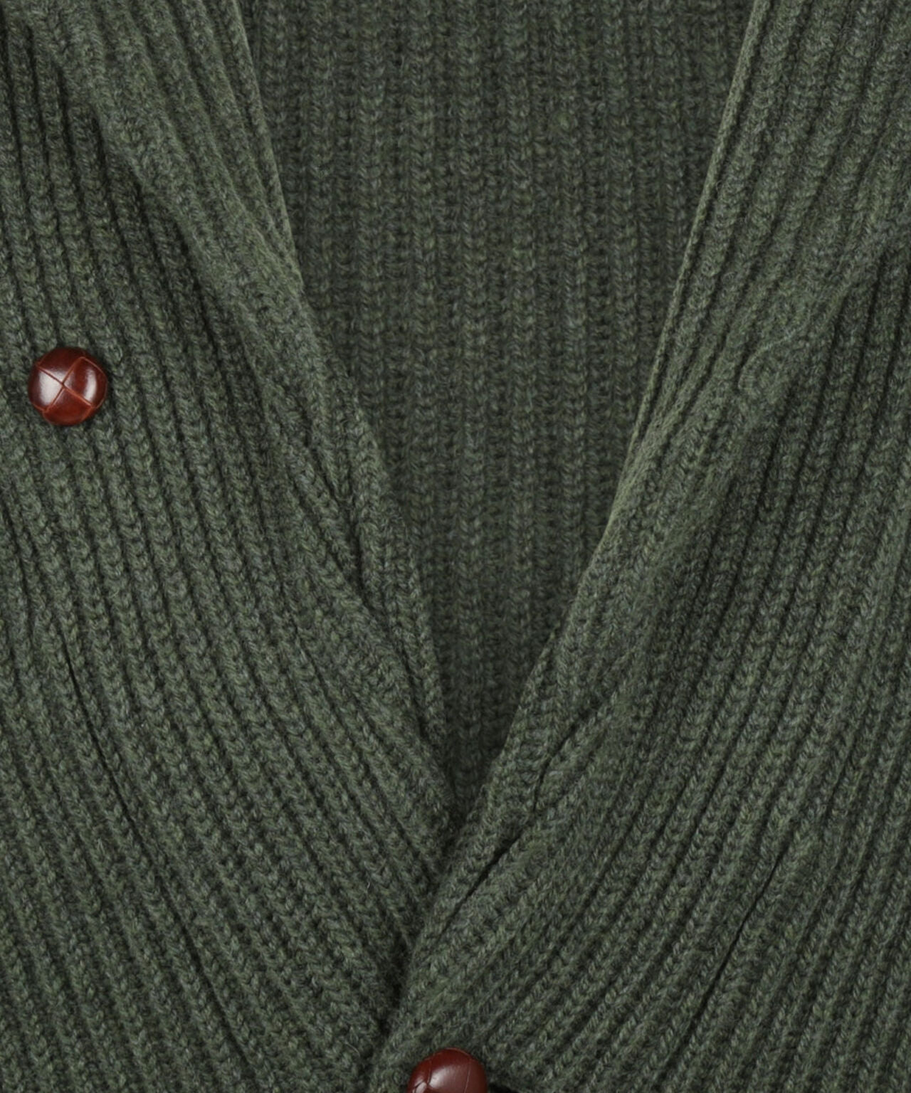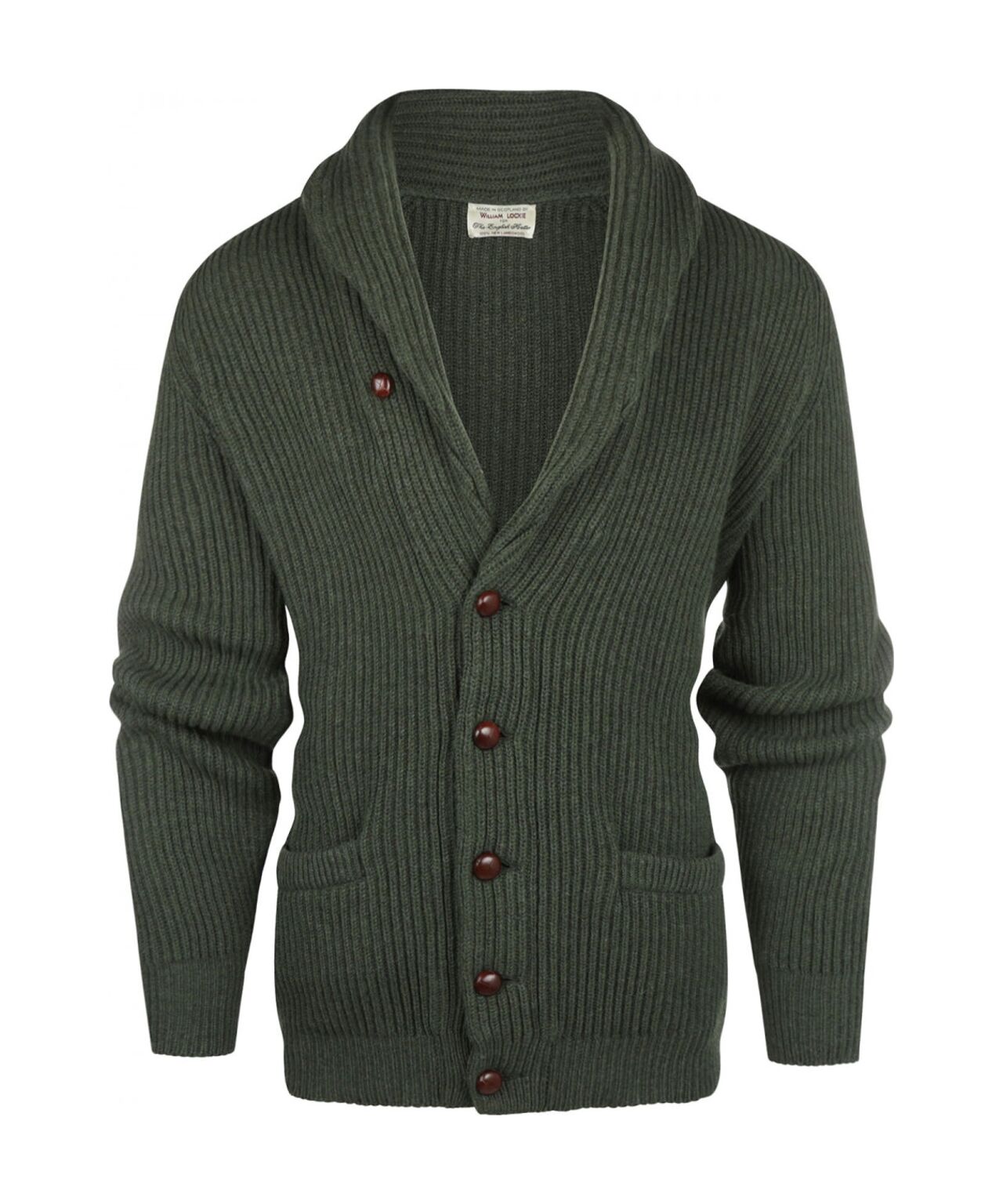 A warm and comfortable cardigan with shawl collar and raglan sleeves. The fit is quite traditional. The vest is made of 4 ply Geelong Lambswool, and has 2 pockets on the front.